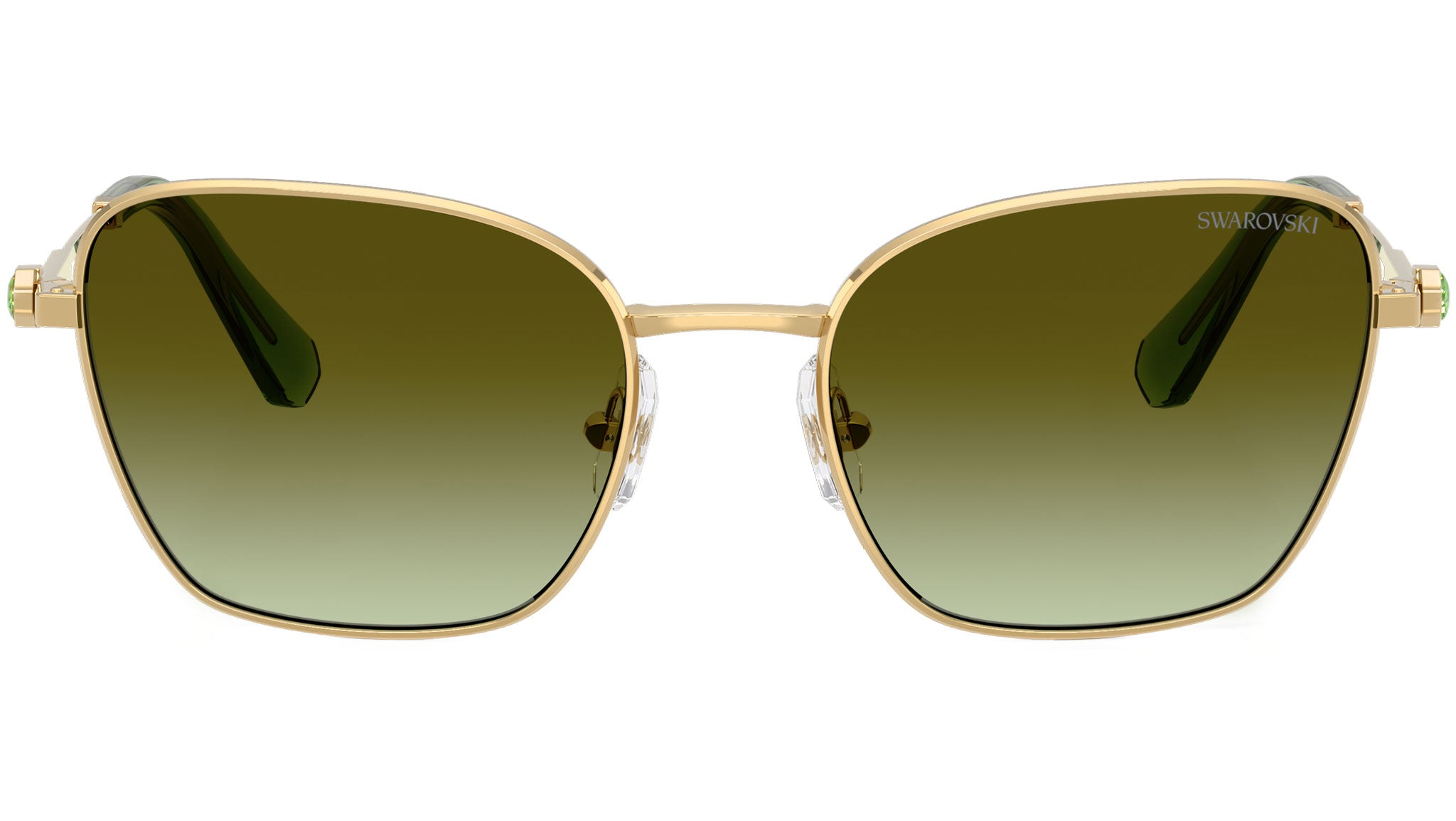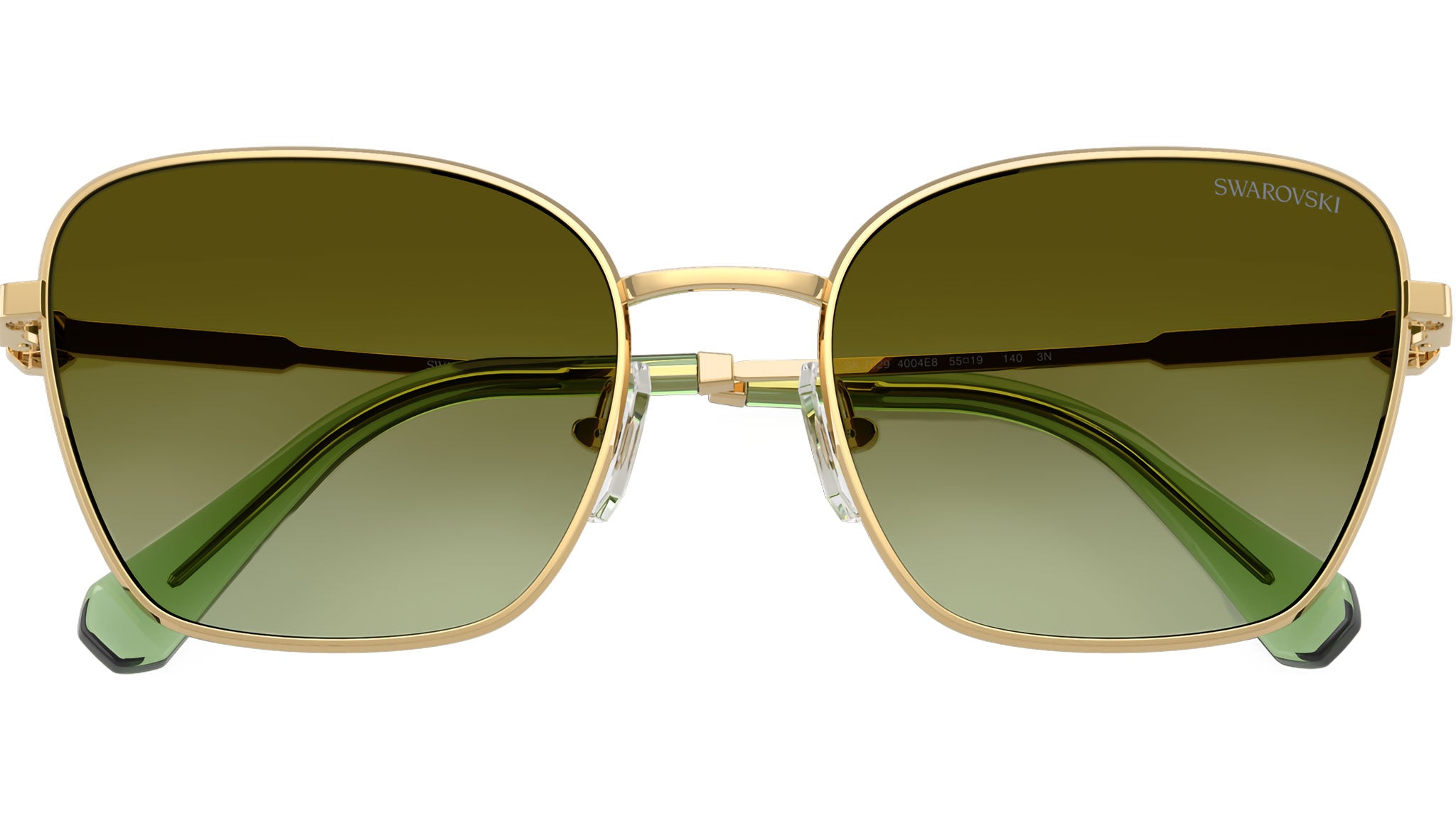 Occhiali da sole Swarovski donna modello 7029 full rim in metallo oro con lenti marrone sfumato verde base 4. Naselli regolabili. Linea: Science of Facets. Codice brand: 0SK7029. Codice colore: 4004E8. Rivenditore autorizzato online Swarovski Eyewear. Ogni prodotto Swarovski viene consegnato con astuccio originale e accessori ed è coperto da garanzia del produttore di 12 mesi.