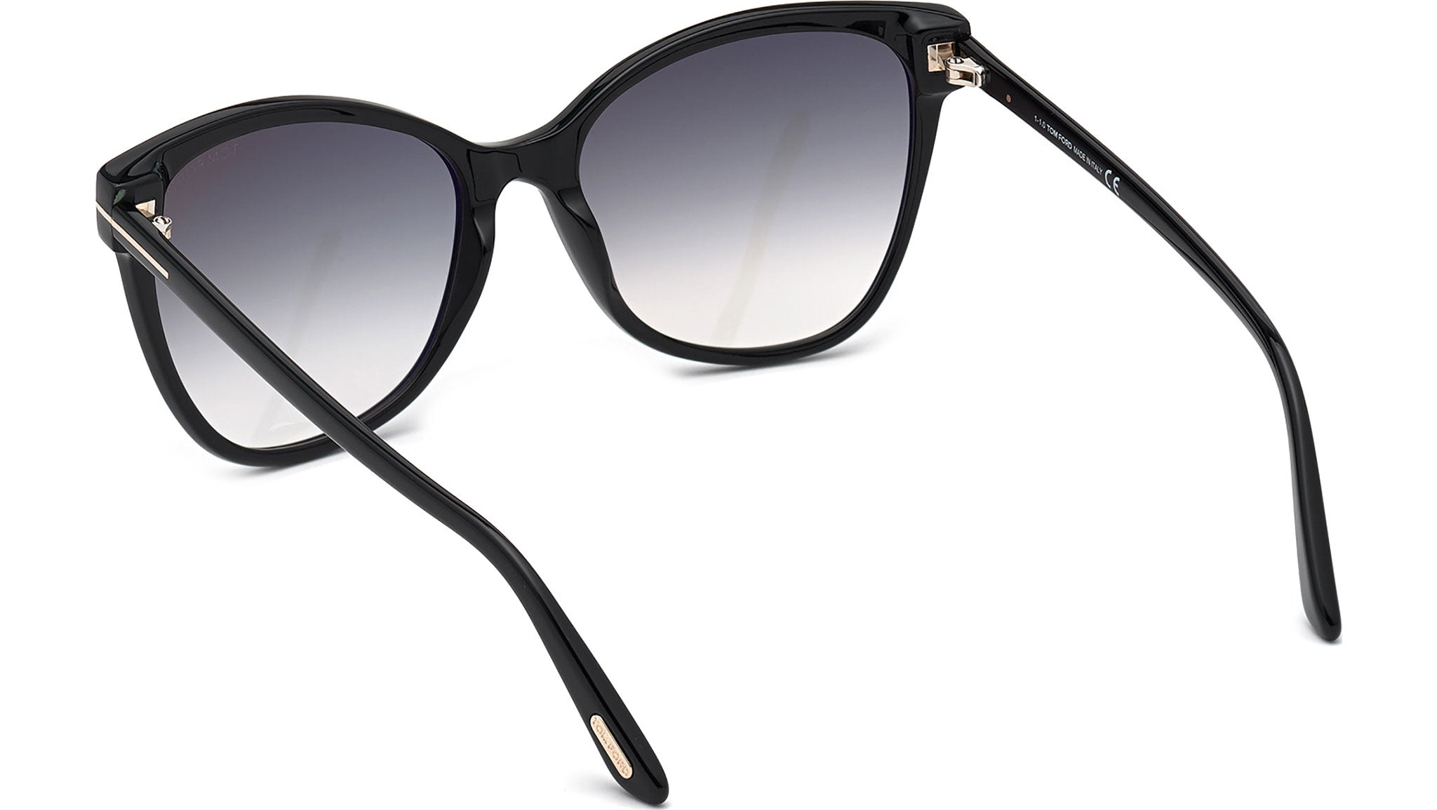 Occhiali da sole Tom Ford Ani codice FT0844 01B con montatura color nero lucido e lenti color grigio sfumato.