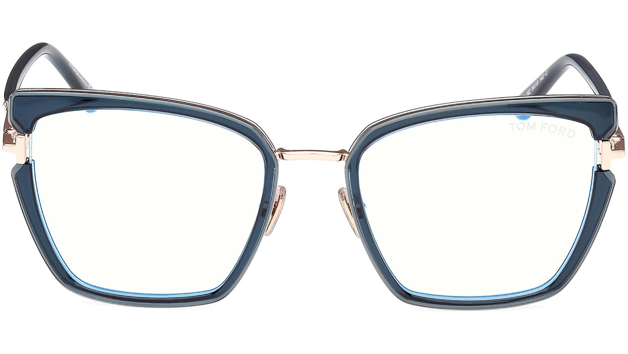 Occhiali da vista Tom Ford donna modello FT5984-B in acetato-metallo colore 092 blu chiaro lucido / oro con lenti demo. Codice brand: FT5984. Codice colore: 092. Rivenditore autorizzato Tom Ford online. Gli occhiali vengono consegnati con custodia e accessori originali e sono coperti da garanzia standard di 12 mesi del produttore.
