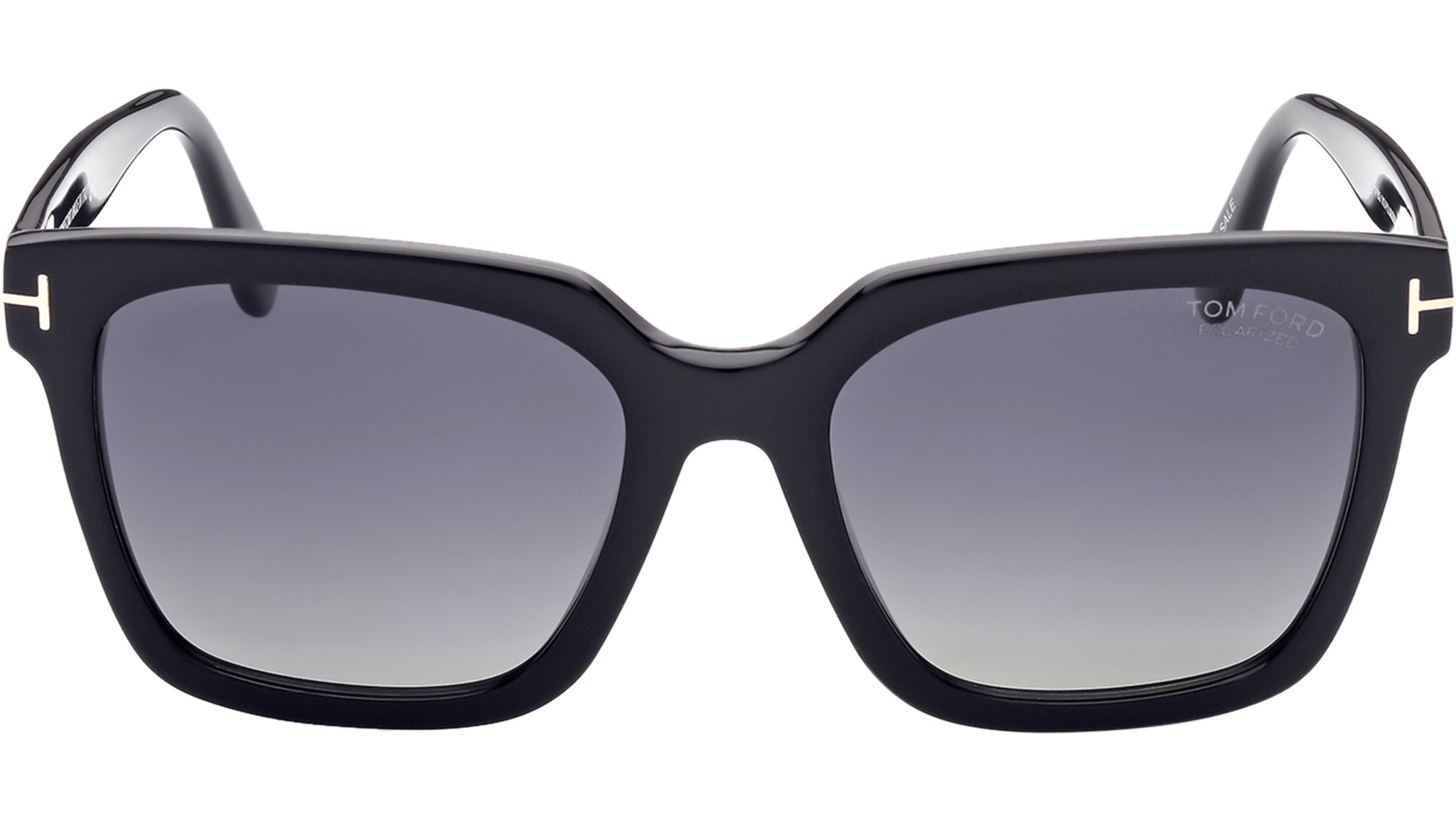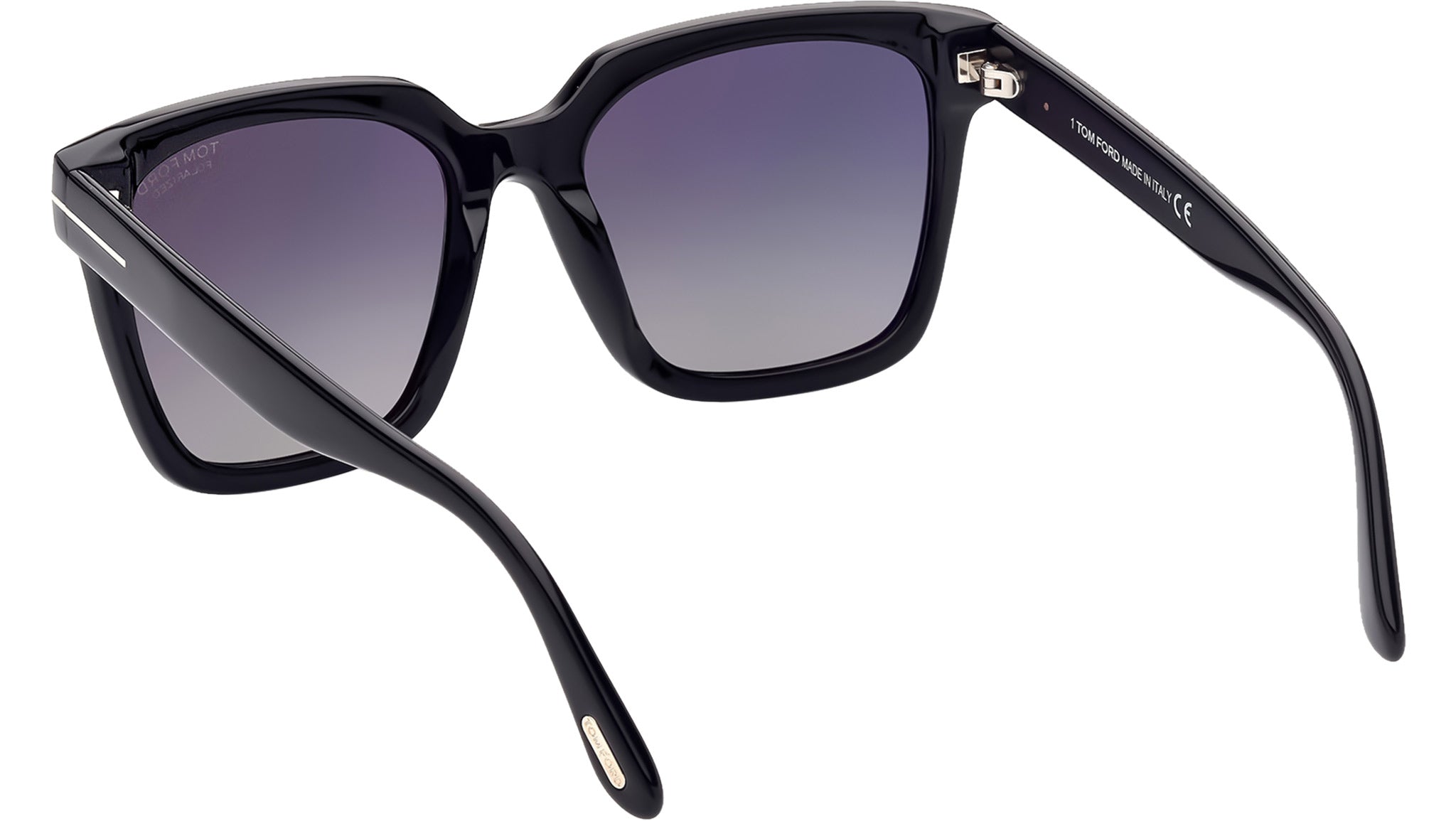Occhiali da sole Tom Ford donna modello Selby FT0952 in acetato nero lucido con lenti color grigio fumo sfumato polarizzato. Codice brand: 0952. Codice colore: 01D. Rivenditore autorizzato Tom Ford online. Gli occhiali vengono consegnati con custodia e accessori originali e sono coperti da garanzia standard di 12 mesi del produttore.