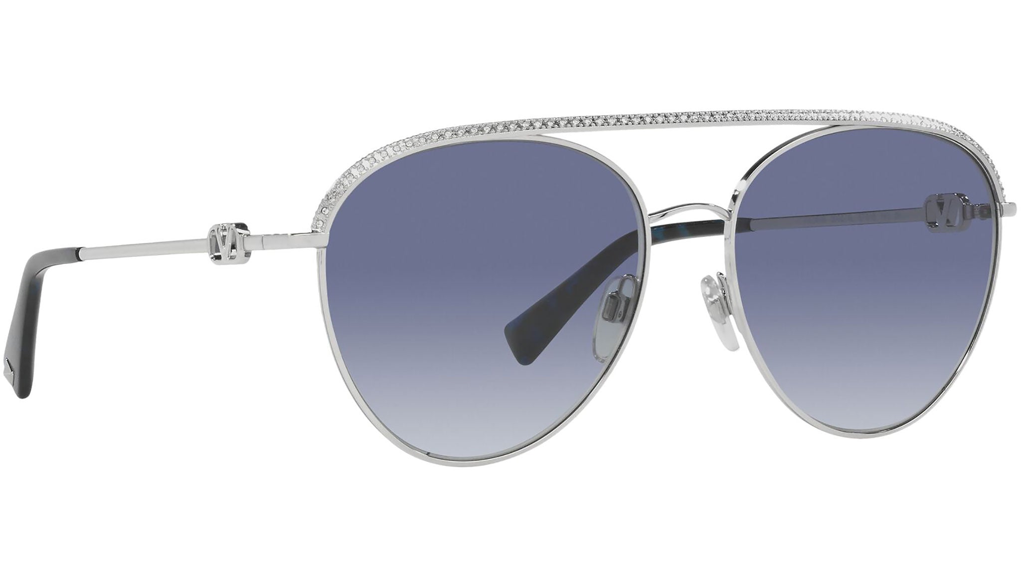 Occhiali da sole Valentino modello VA2048 variante colore 30064L argento, con lenti color blu sfumato. Fondata a Roma nel 1960, la Maison Valentino è una delle espressioni più alte del savoir faire couture e dell’eccellenza che hanno reso il made in Italy famoso nel mondo. Le collezioni Valentino eyewear esprimono l’eleganza senza tempo della Maison in un perfetto equilibrio tra tradizione ed innovazione nel pieno rispetto degli iconici valori del brand.