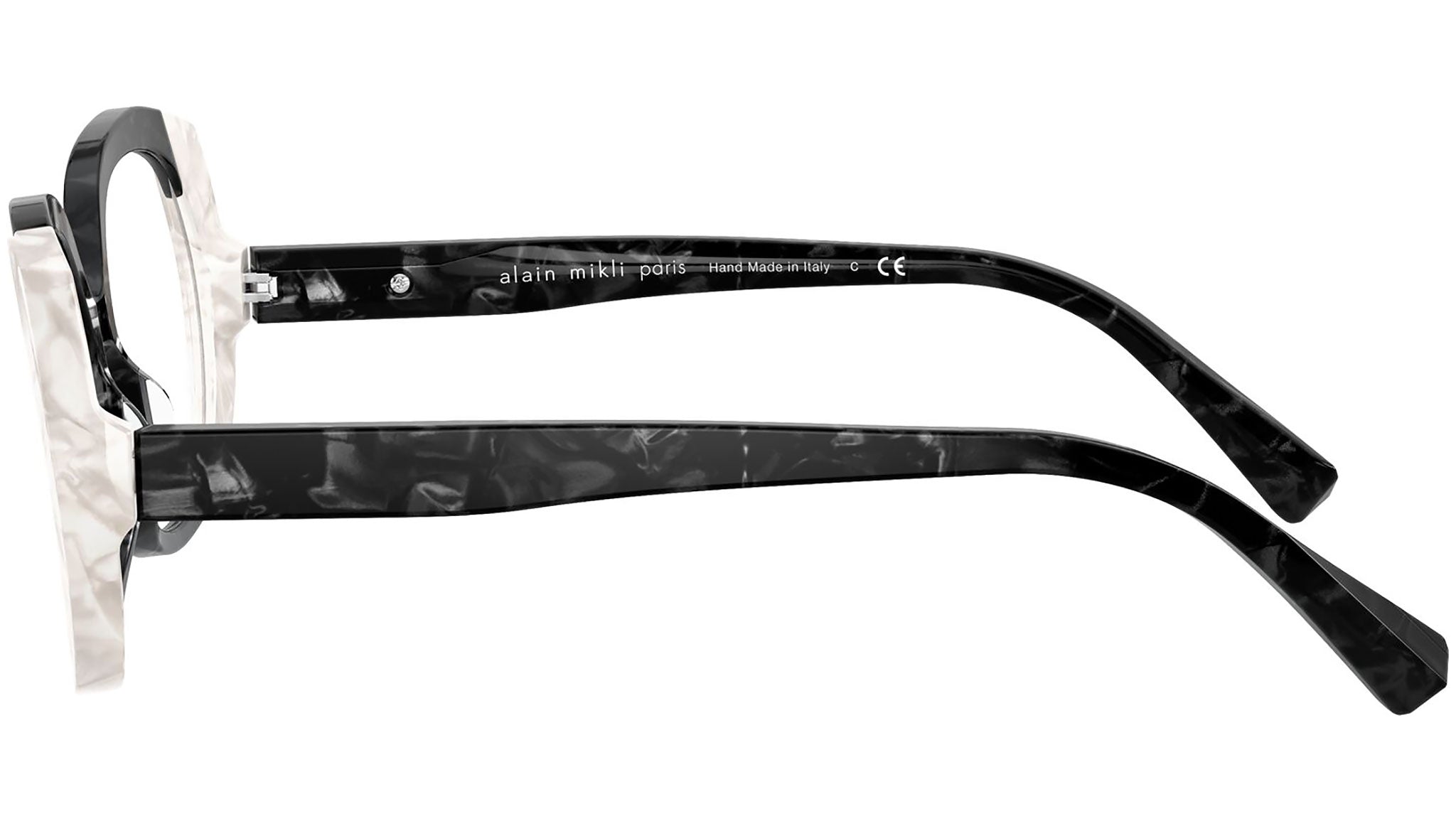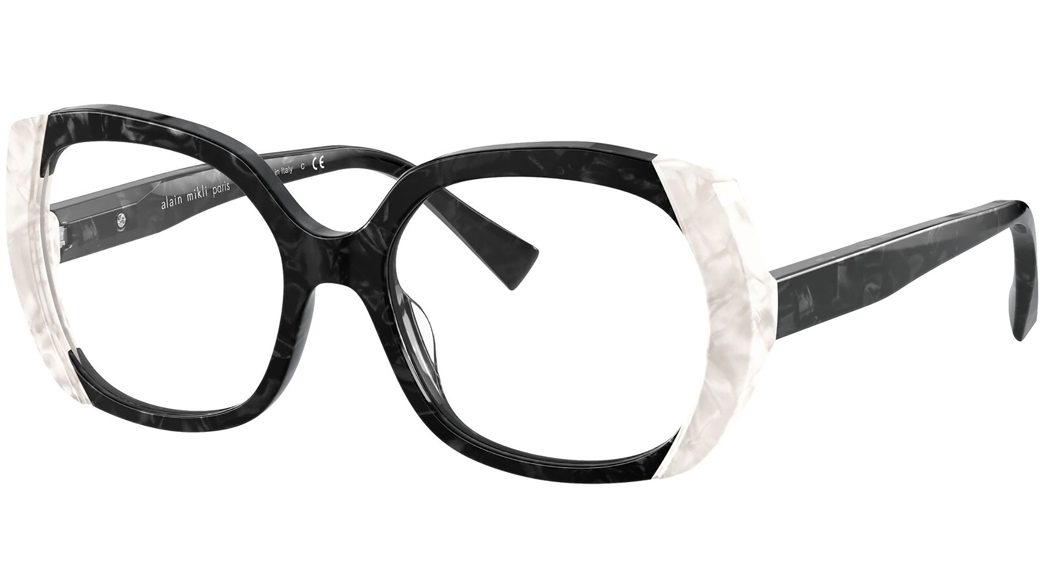 Occhiali da vista Alain Mikli modello 0A03116 variante colore noir in bianco e blanc, codice colore 001. Alain Mikli è stato il primo marchio a sostenere l’idea di occhiale come accessorio. Dalla fusione di arte e moda nascono montature da sempre sinonimo di unicità e provocazione, contraddistinte per il design originale e le combinazioni di colori esclusive.