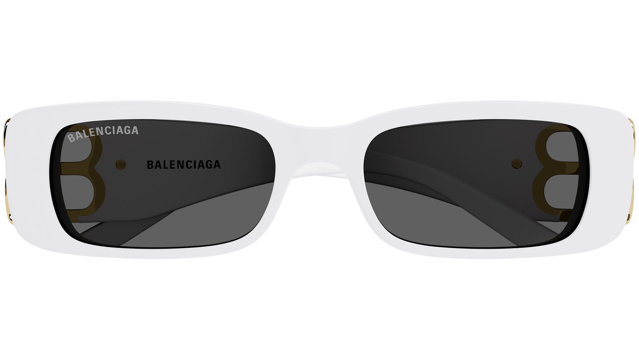 Occhiali da sole Balenciaga linea Everyday BB0096S codice colore 011 con montatura bianco tinta unita lucido e lenti color grigio tinta unita.