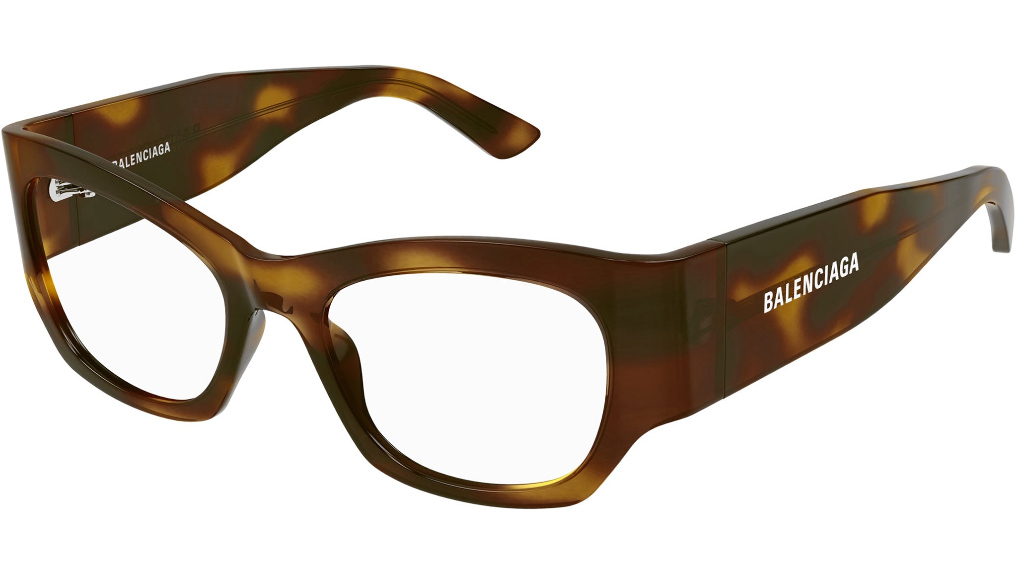 Occhiali da vista Balenciaga modello BB0333O linea Everyday codice colore 003 avana medio lucido in acetato riciclato forma cat eye con aste color tartaruga.
