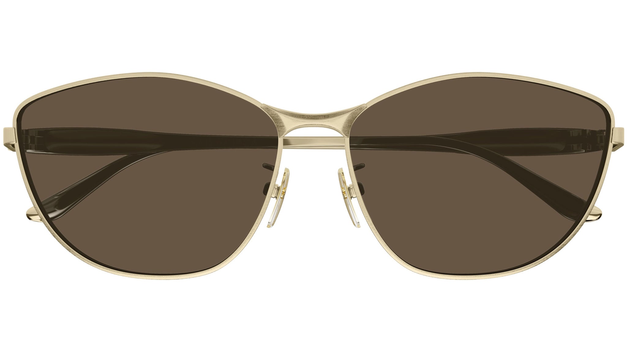 Occhiali da sole Balenciaga modello BB0358SK linea Everyday codice colore 003 oro chiaro spazzolato orizzontale lucido in metallo forma rettangolare con aste color oro e lenti color marrone tinta unita. Rivenditore autorizzato Balenciaga online. Gli occhiali vengono consegnati con custodia e accessori originali e sono coperti dalla garanzia ufficiale di 12 mesi del produttore.