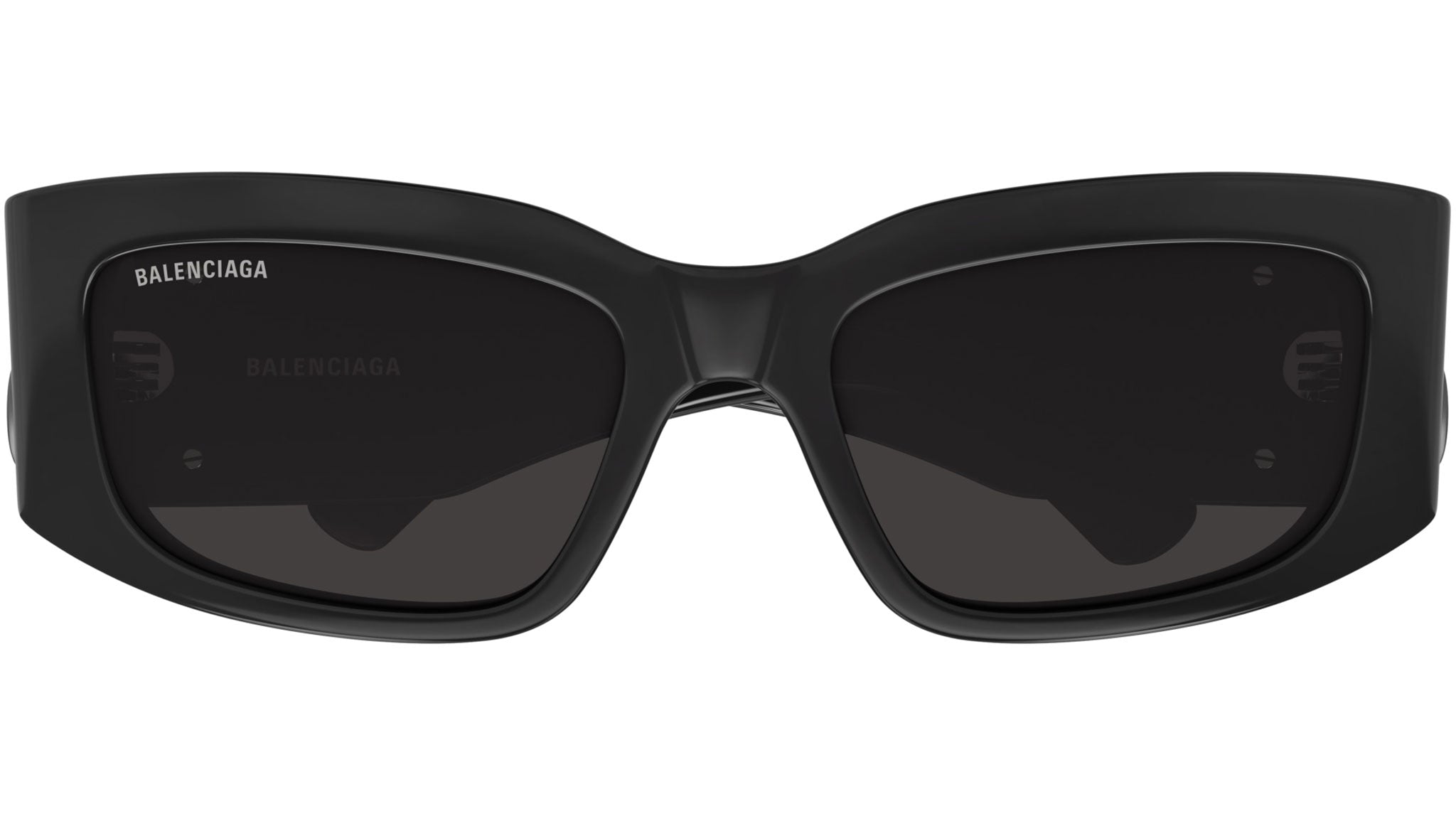 Occhiali da sole Balenciaga modello BB0360S linea Everyday codice colore 001 nero lucido tinta unita in acetato riciclato forma rettangolare con aste color nero e lenti color grigio tinta unita. Rivenditore autorizzato Balenciaga online. Gli occhiali vengono consegnati con custodia e accessori originali e sono coperti dalla garanzia ufficiale di 12 mesi del produttore.