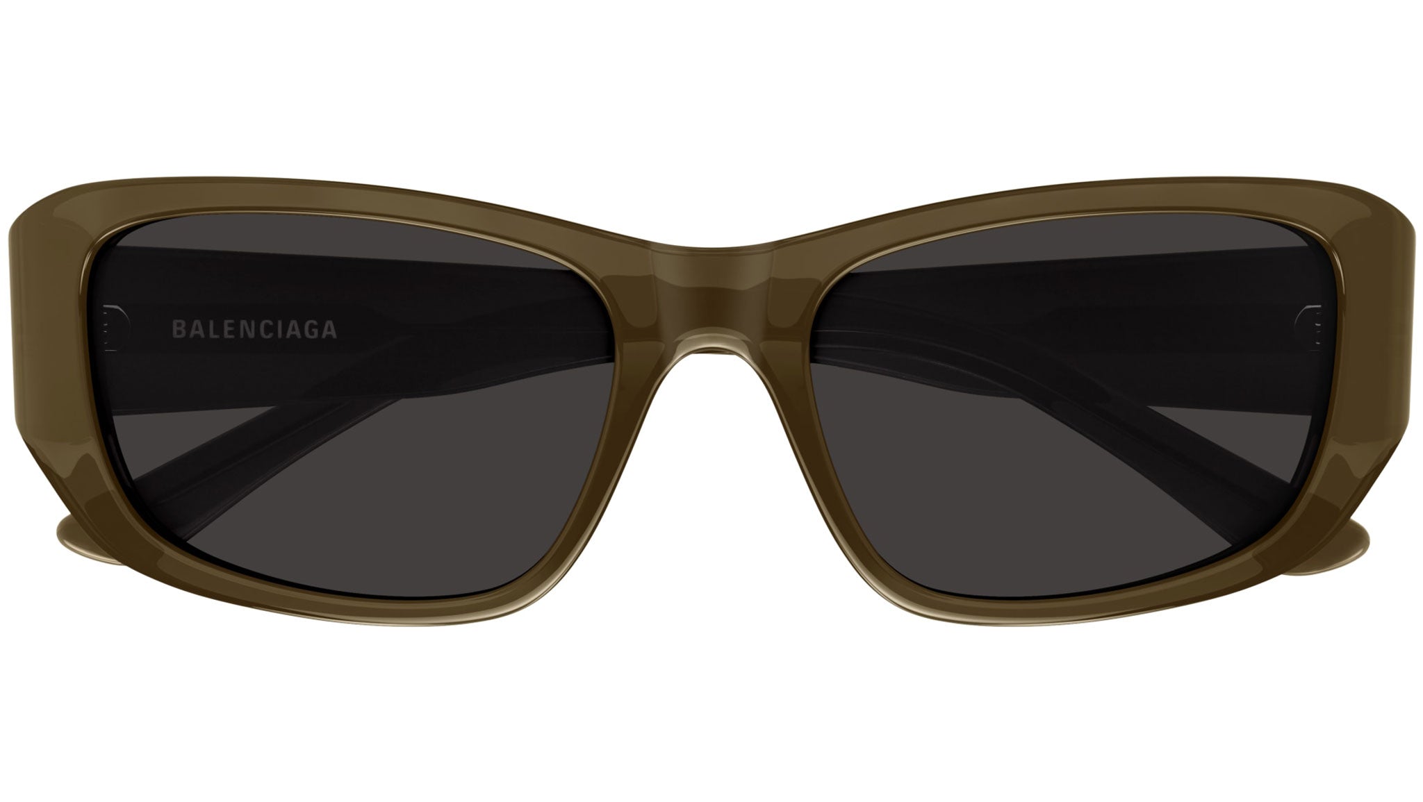 Occhiali da sole Balenciaga modello BB0365S linea Everyday codice colore 004 marrone freddo trasparente lucido in acetato riciclato forma rettangolare con aste color marrone e lenti color grigio tinta unita. Rivenditore autorizzato Balenciaga online. Gli occhiali vengono consegnati con custodia e accessori originali e sono coperti dalla garanzia ufficiale di 12 mesi del produttore.