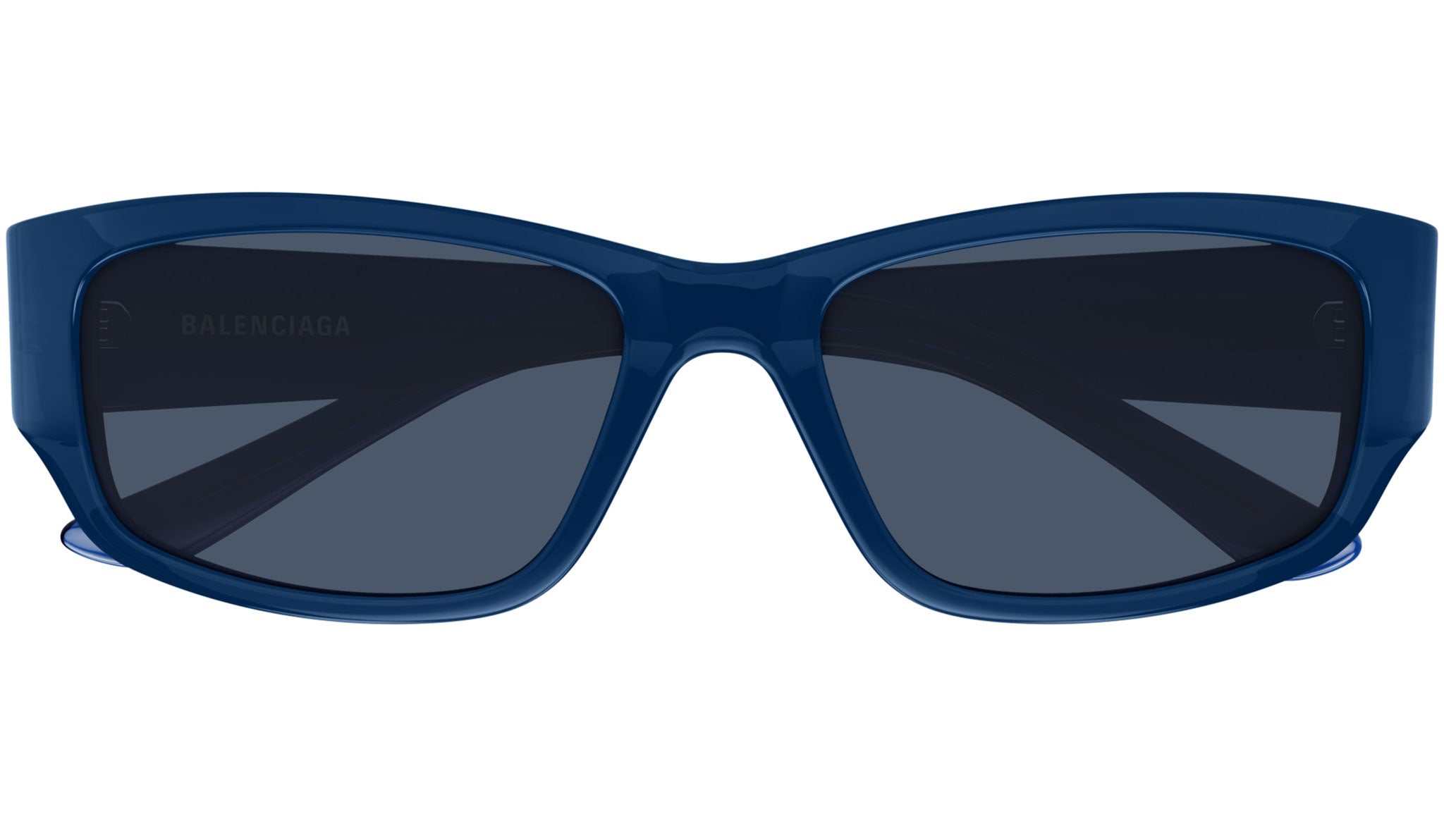 Occhiali da sole Balenciaga modello BB0368SK linea Everyday codice colore 003 blu scuro trasparente lucido in acetato riciclato forma rettangolare con aste color blu e lenti color grigio blu tinta unita. Rivenditore autorizzato Balenciaga online. Gli occhiali vengono consegnati con custodia e accessori originali e sono coperti dalla garanzia ufficiale di 12 mesi del produttore.