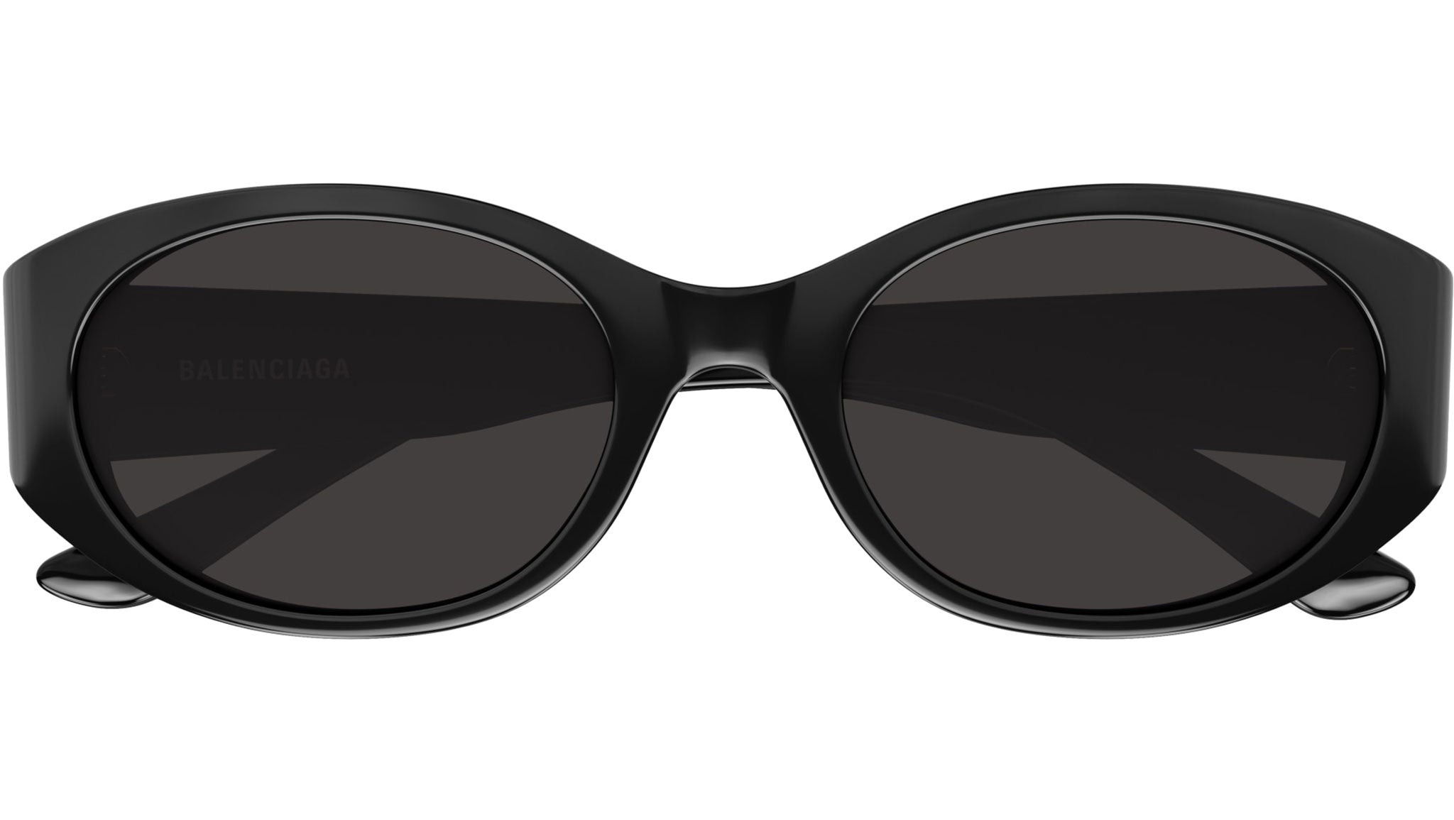 Occhiali da sole Balenciaga modello BB0369SK linea Everyday codice colore 001 nero lucido tinta unita in acetato riciclato forma pantos con aste color nero e lenti color grigio tinta unita. Rivenditore autorizzato Balenciaga online. Gli occhiali vengono consegnati con custodia e accessori originali e sono coperti dalla garanzia ufficiale di 12 mesi del produttore.