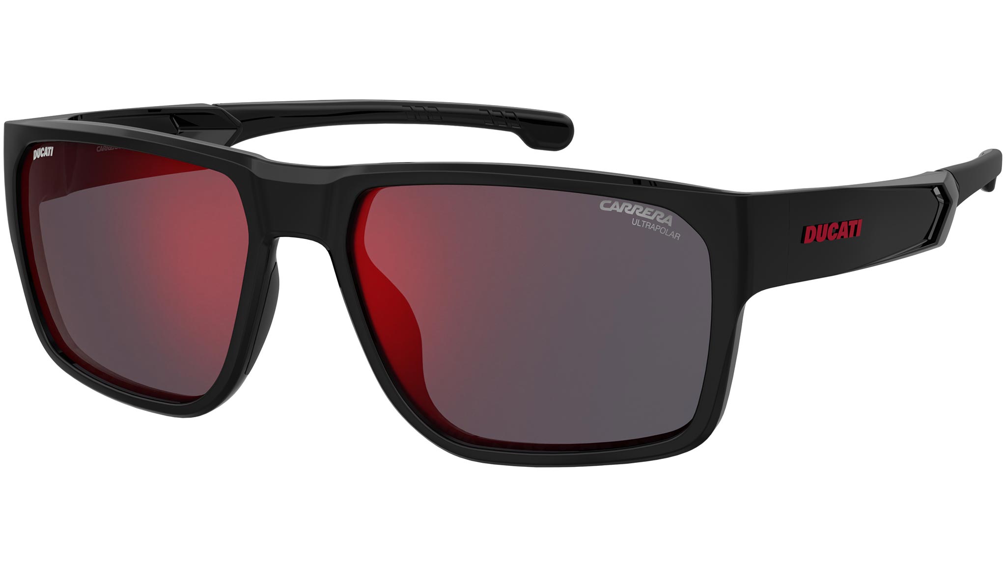Occhiali da sole Carrera Ducati modello CarDuc 029/S colore 807 H4 black. Perfetti per le giornate in moto così come in quelle a tutto relax, questi occhiali da sole Carrera | Ducati sfrecciano dritti al cuore degli appassionati. Spiccano le aste: la parte iniziale è in Ultem, flessibile e resistente. Presentano inoltre il foro a V – omaggio alle geometrie delle moto – e loghi ben visibili. La montatura avvolgente può montare lenti graduate. Disponibile anche con lenti specchiate oppure ultrapolar.