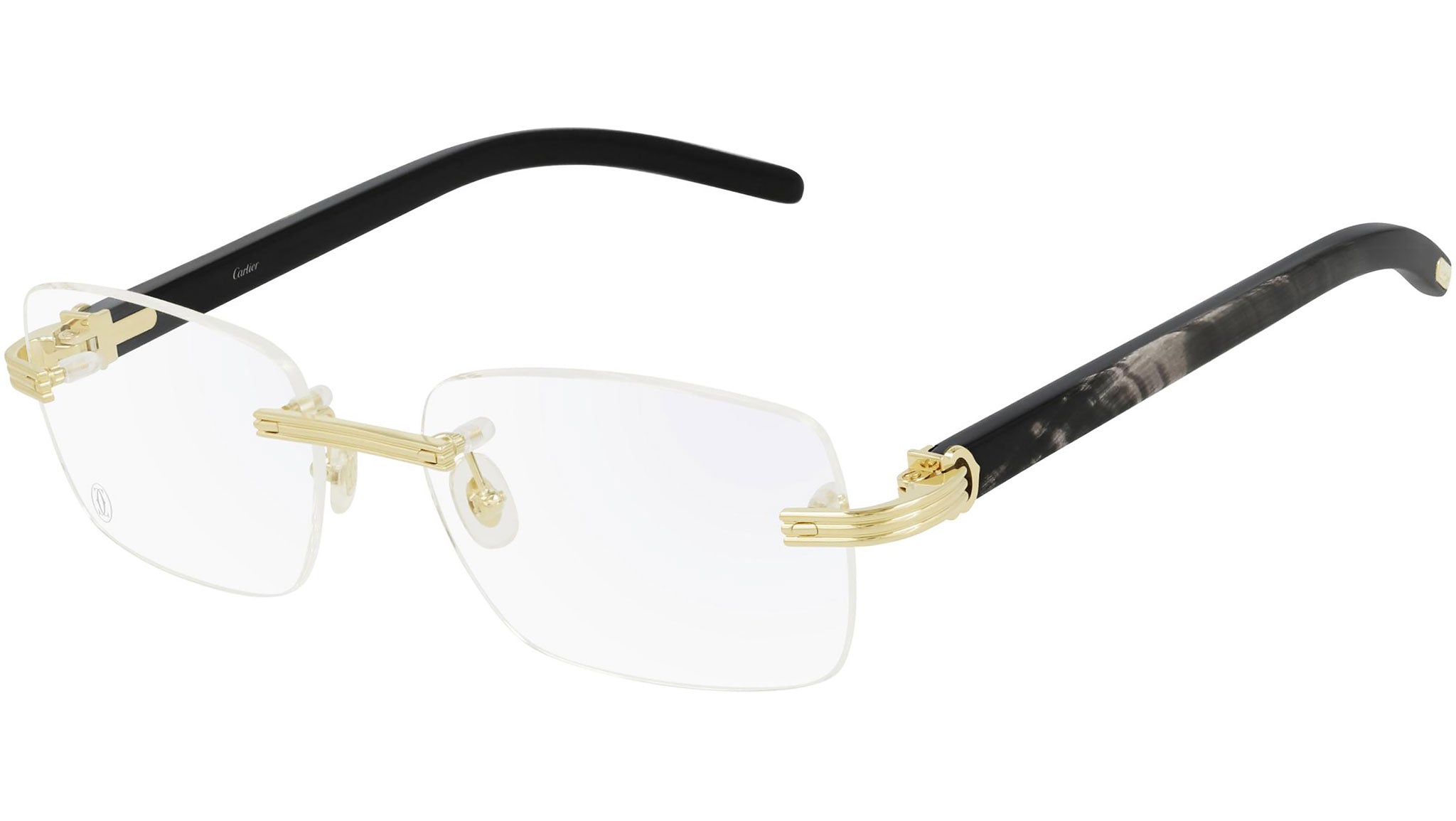 Occhiali da vista Cartier linea Exception modello CT0286O 001, variante colore oro levigato con astine color nero. Una visione esclusiva del più moderno concetto di eleganza, radicata nel savoir-faire e nell'alto artigianato della Maison, contraddistingue la nuova collezione di occhiali da vista Cartier Primavera Estate 2021. Una straordinaria combinazione di creatività e tecnicità dei materiali e delle soluzioni di design, prende vita in modelli unici e raffinati.