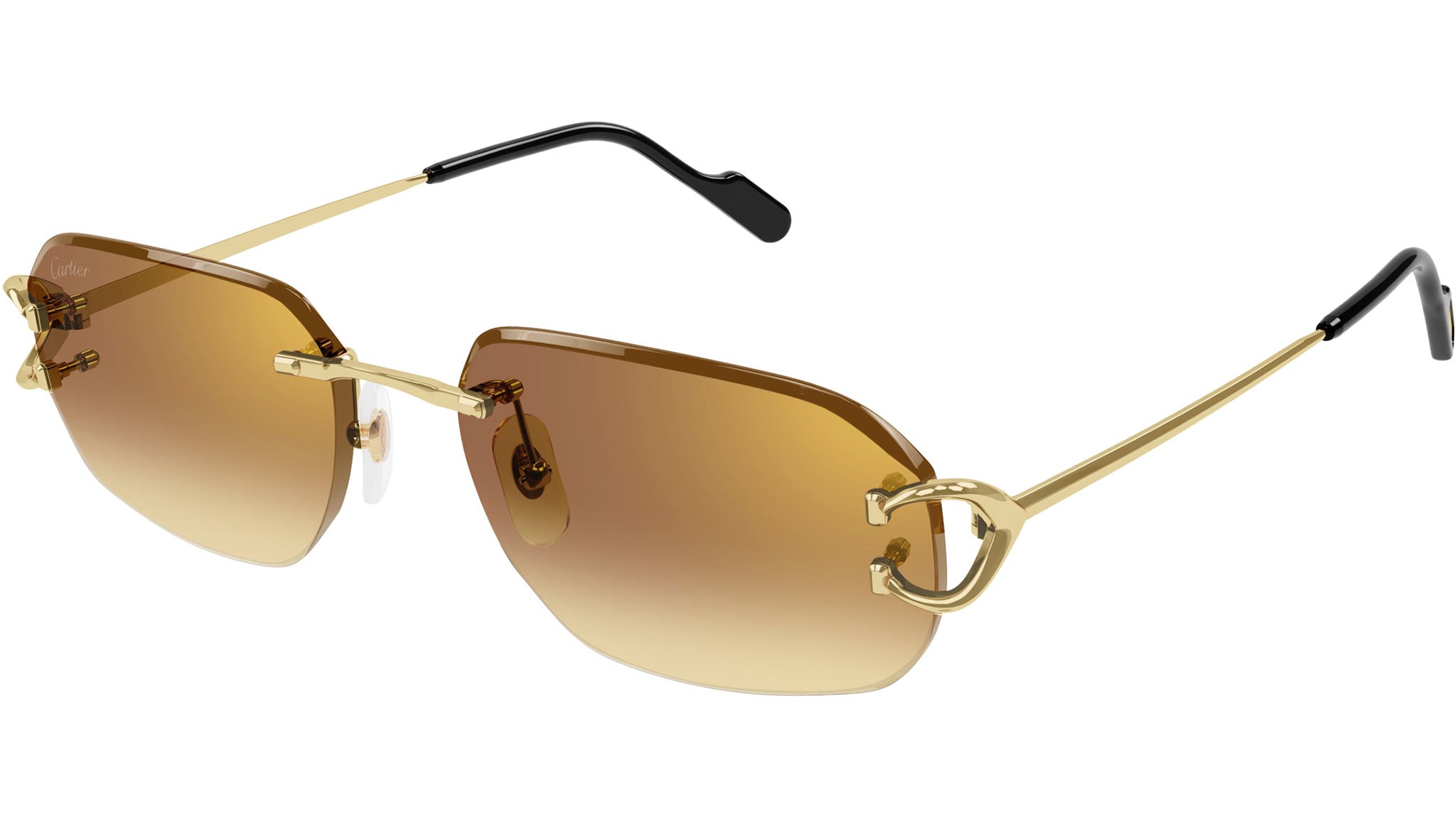 Occhiali da sole Cartier linea Core Range modello CT0468S aviator in metallo codice colore 004 oro finitura smooth con aste oro e lenti color marrone e ocra con flash oro.
