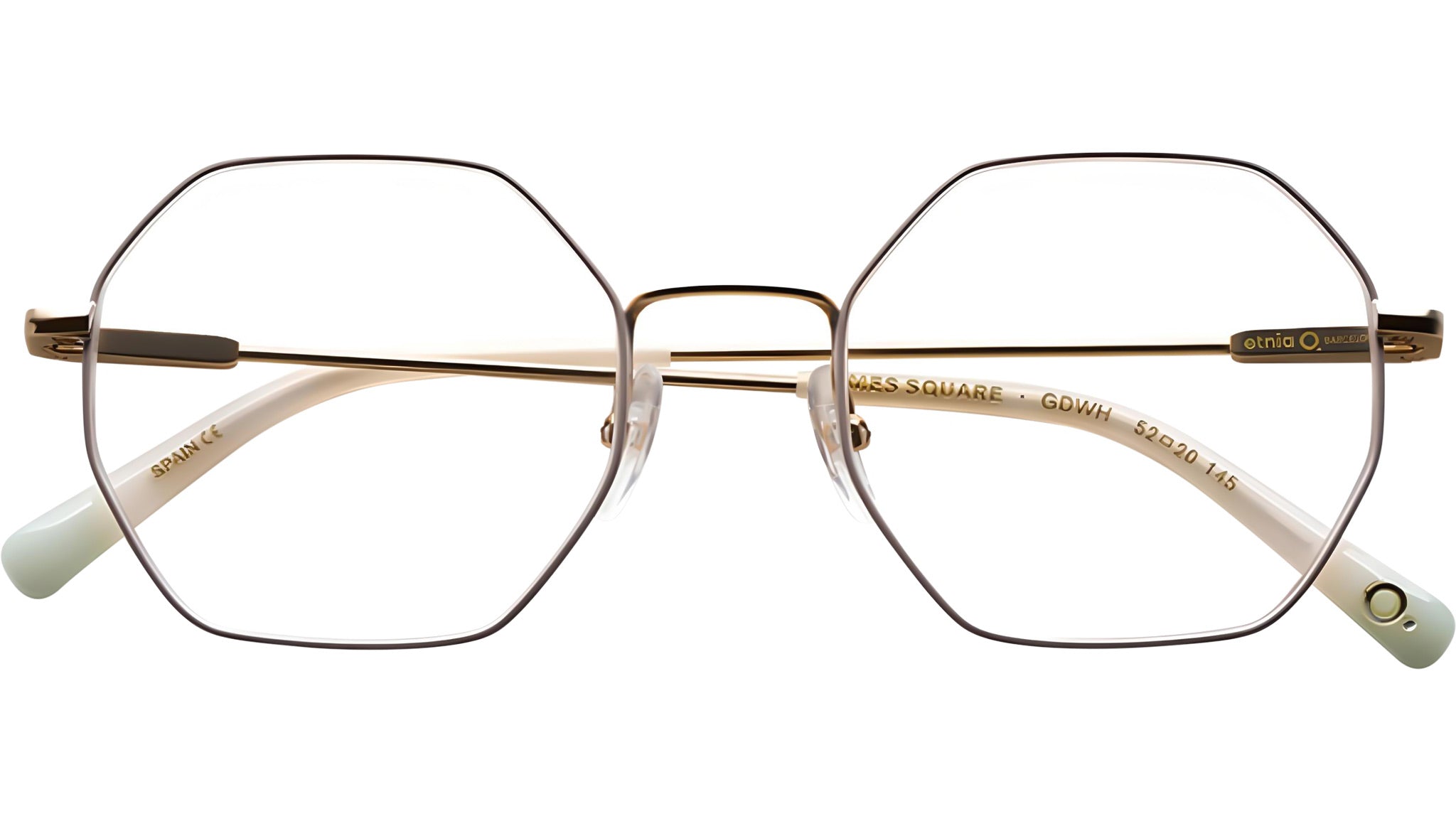 Occhiali da vista Etnia Barcelona Times Square in metallo oro / bianco con lenti demo. Codice modello: TIMES SQUARE 52O. Codice colore: GDWH. Rivenditore autorizzato online Etnia Barcelona. Gli occhiali vengono forniti con custodia e accessori originali e sono coperti dalla garanzia standard del produttore di 12 mesi.