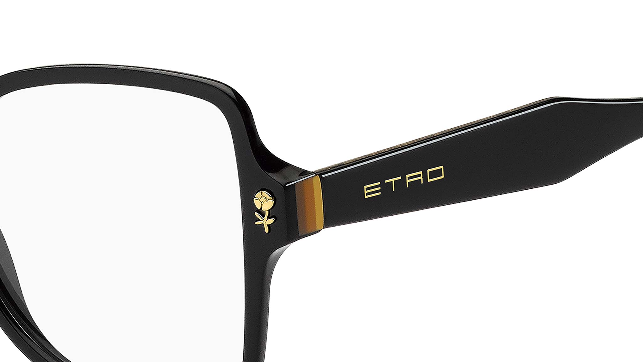 Occhiali da vista ETRO modello 0013 codice colore 71C nero giallo con lenti demo Un omaggio ai motivi floreali e pattern grafici che definiscono l'estetica di ETRO, la collezione eyewear "Graphic Elegance" traduce i ricami e le stampe della Maison in occhiali da vista eclettici e raffinati. La montatura in acetato dagli angoli smussati è impreziosita da un'applicazione in metallo a forma di fiore e un inserto a righe multicolore sui lati. Le aste sono realizzate in acetato trasparente con un'anima interna in metallo. Il design innovativo è completato dagli iconici terminali in acetato, ispirati alla simmetria del logo ETRO. Rivenditore autorizzato online ETRO Eyewear.