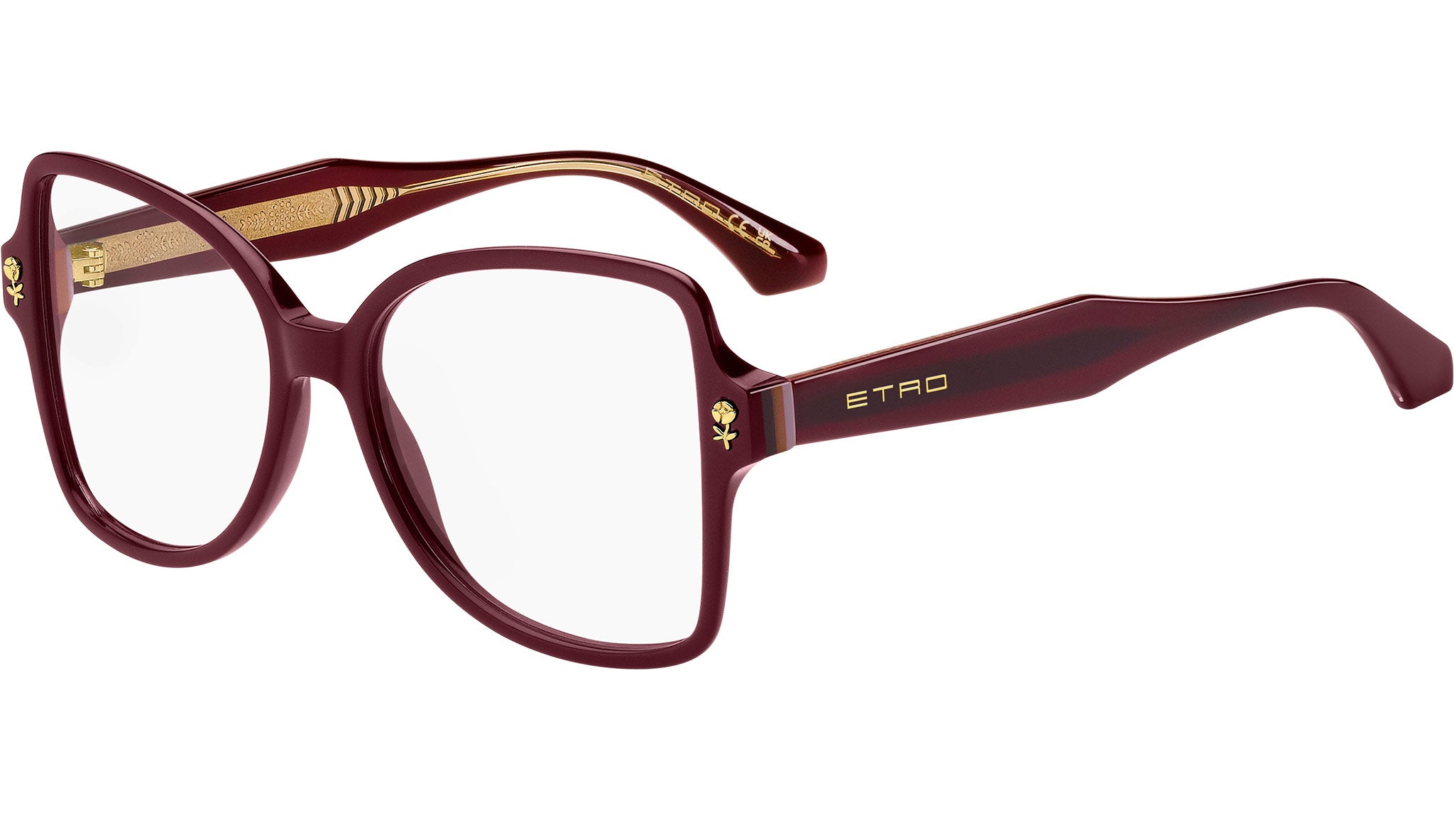 Occhiali da vista ETRO modello 0013 codice colore LHF bordeaux con lenti demo Un omaggio ai motivi floreali e pattern grafici che definiscono l'estetica di ETRO, la collezione eyewear "Graphic Elegance" traduce i ricami e le stampe della Maison in occhiali da vista eclettici e raffinati. La montatura in acetato dagli angoli smussati è impreziosita da un'applicazione in metallo a forma di fiore e un inserto a righe multicolore sui lati. Le aste sono realizzate in acetato trasparente con un'anima interna in metallo. Il design innovativo è completato dagli iconici terminali in acetato, ispirati alla simmetria del logo ETRO. Rivenditore autorizzato online ETRO Eyewear.