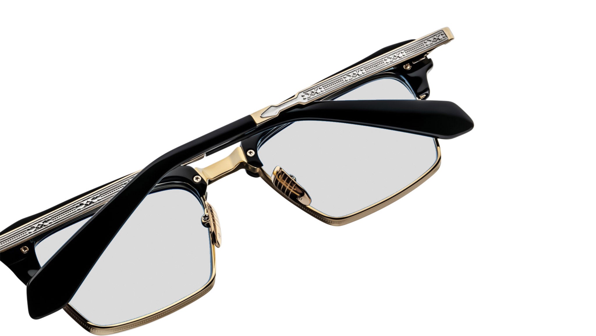 Fabricadas 100% con titanio beta en un exclusivo acabado Moon Gold con refinados detalles plateados, estas gafas ejemplifican precisión y sofisticación. La montura se complementa con detalles de acetato de celulosa curado en negro y patillas de titanio grabadas en plata con puntas de acetato para una mayor comodidad. Una bisagra monobloque con punta de flecha personalizada asegurada por tensión en Moon Gold garantiza durabilidad y un movimiento fluido, mientras que las almohadillas nasales personalizadas de acetato de celulosa negro cuentan con un logotipo grabado y delicados detalles en forma de línea fina. Esta pieza se presenta con un estuche rígido personalizado, un paño de microfibra y un certificado de autenticidad, lo que refleja el compromiso de la marca con la artesanía excepcional y la exclusividad.