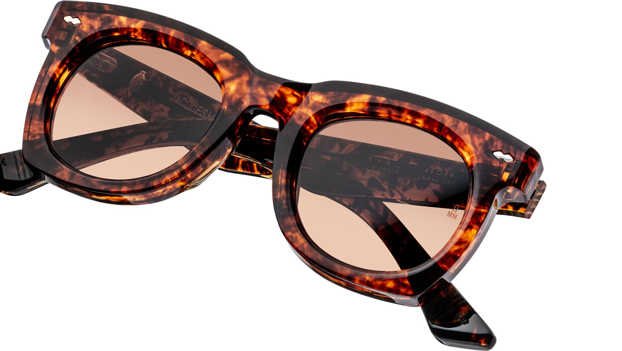 The Jacques Marie Mage Ava glasses for women are a nod to the elegance of the ‘50s. These sleek frames feature double-arrowhead front pins and exposed wirecores engraved with Art Deco-inspired lines. Inspired by a beloved mid-century actress, they embody a blend of grace and sharpness, an effortless yet understated symbol of fierce femininity and unparalleled elegance. These limited-edition glasses capture the essence of a wolf in queen's clothing, perfect for those who appreciate couture's killer edge.