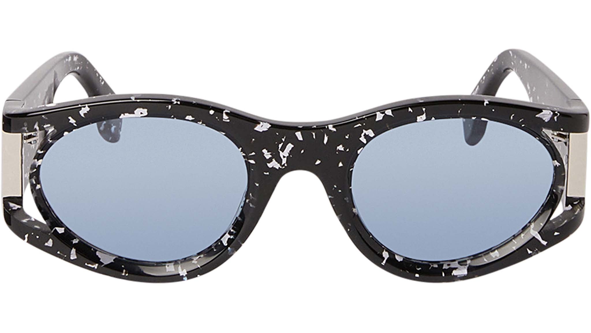 Pasithea di Marcelo Burlon County of Milan è un occhiale da sole ovale, geometrico, dall'aspetto scultoreo, che strizza l’occhio alla scena clubbing dei primi anni 2000. Le aste sono collegate al frontale tramite un'unica cerniera cut-out per un tocco non convenzionale. La proposta di colori comprende due opzioni classiche, bianco e nero, e due più divertenti, nero effetto marmo con lenti blu o montatura viola sognante.