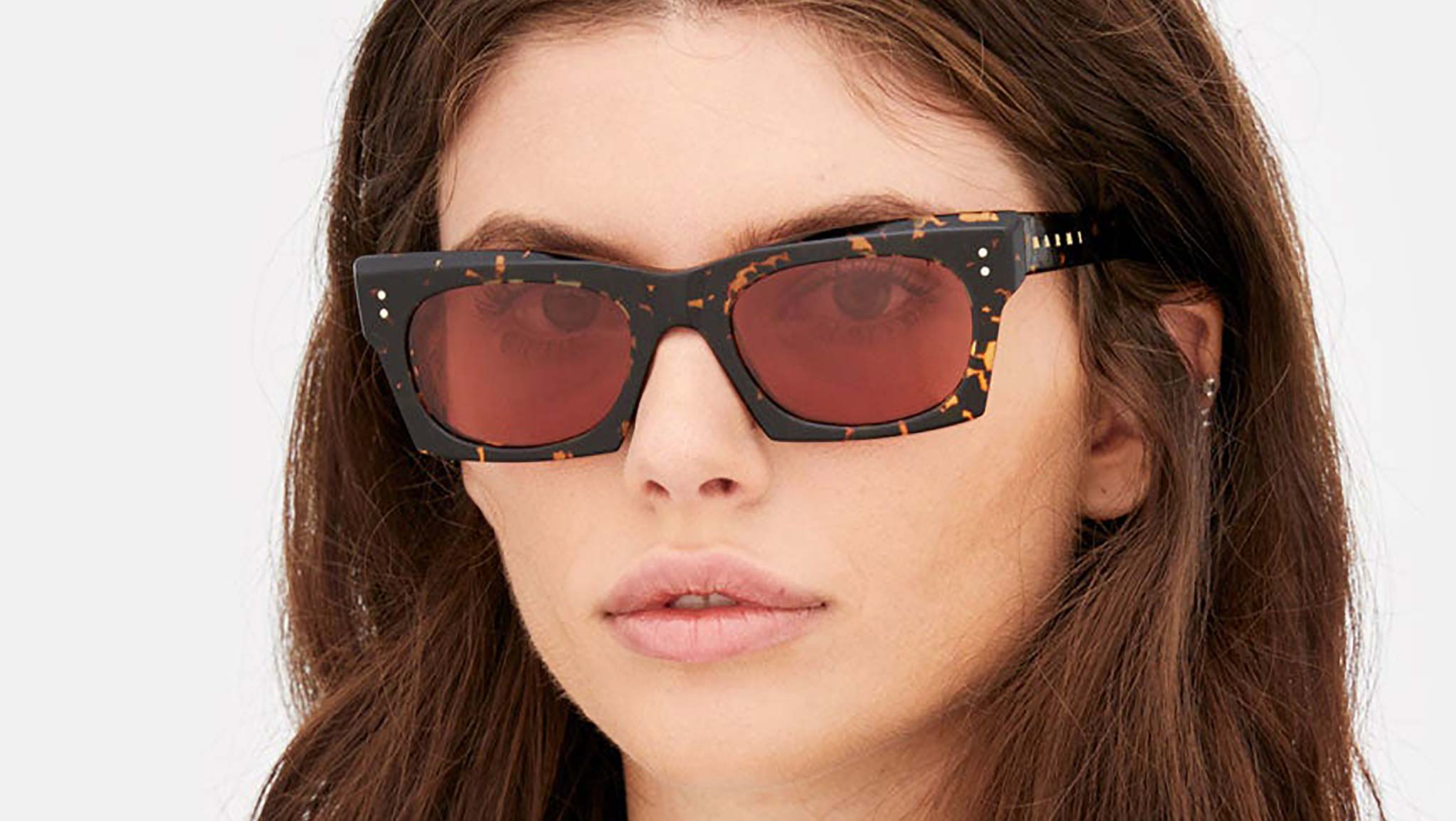 Designed exclusively for Marni, Edku is an angular, precise silhouette conceived as an elevated interpretation for everyday eyewear expression. The model features a thick and sturdy acetate construction, with oval lenses set within sharp geometric rims. Carved, slanted rims on the top section of the lenses highlight the model’s determined geometry. This version of Edku comes in a vibrant spotted Havana acetate with deep burgundy lenses. Sizes: R Lens Width: 52 mm. Frame Front: Frame Side: 145 mm. Product Code Size R: 2B3