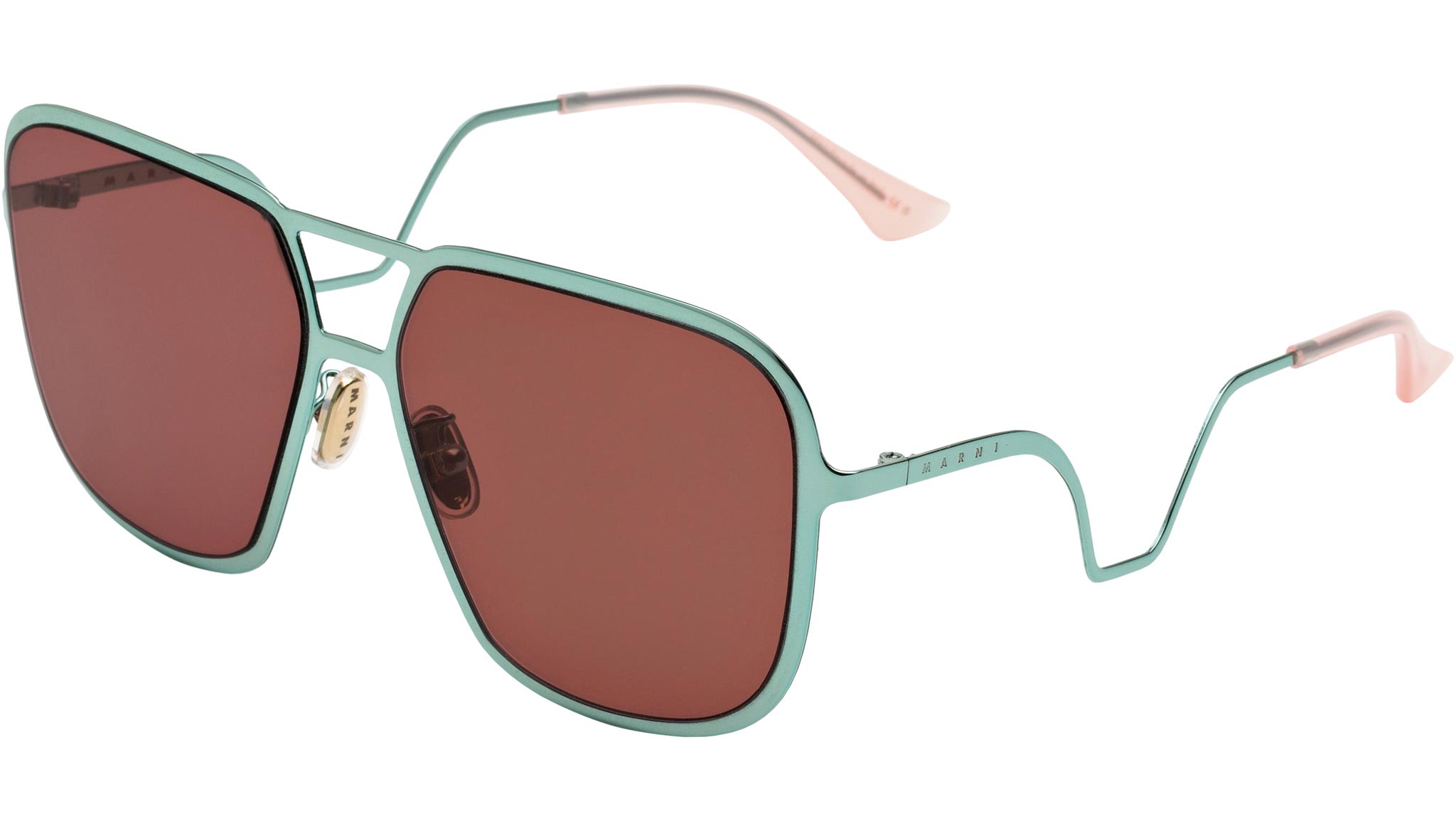 Designed exclusively for Marni, Ha Long Bay is a sleek silhouette carved out of a single sheet of shiny metal. The model features squared lenses encased within flat metal rims with a double nose-bridge. The key feature of the model are its curved temples with acetate tips. The model comes with a mineral green metallic finish and earthy tone lenses. Sizes: R Lens Width: 58 mm. Frame Front: Frame Side: 145 mm. Product Code Size R: LPH