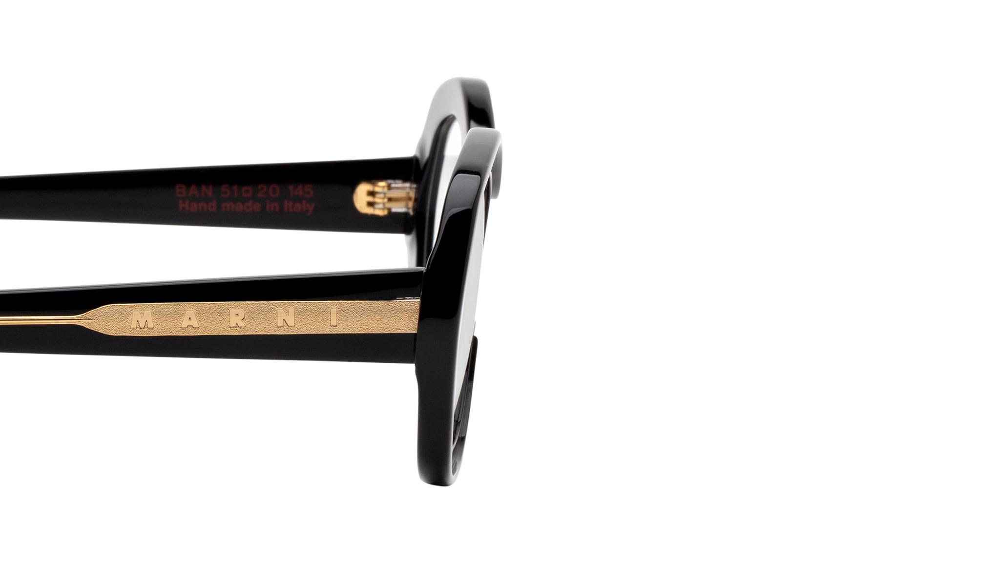 Designed exclusively for Marni, Ulawun Volcano is an eclectic silhouette characterised by oversized lenses and octagonal rims. Inspired by vintage 1960s aesthetics, these chunky glasses are a playful addition to everyday style. The acetate has been chiselled on the sides for lightness and comfort, while a lowered nose-bridge ensures a compact fit. This model comes in black acetate. Sizes: R Lens Width: 51 mm. Frame Front: Frame Side: 145 mm. Product Code Size R: BAN