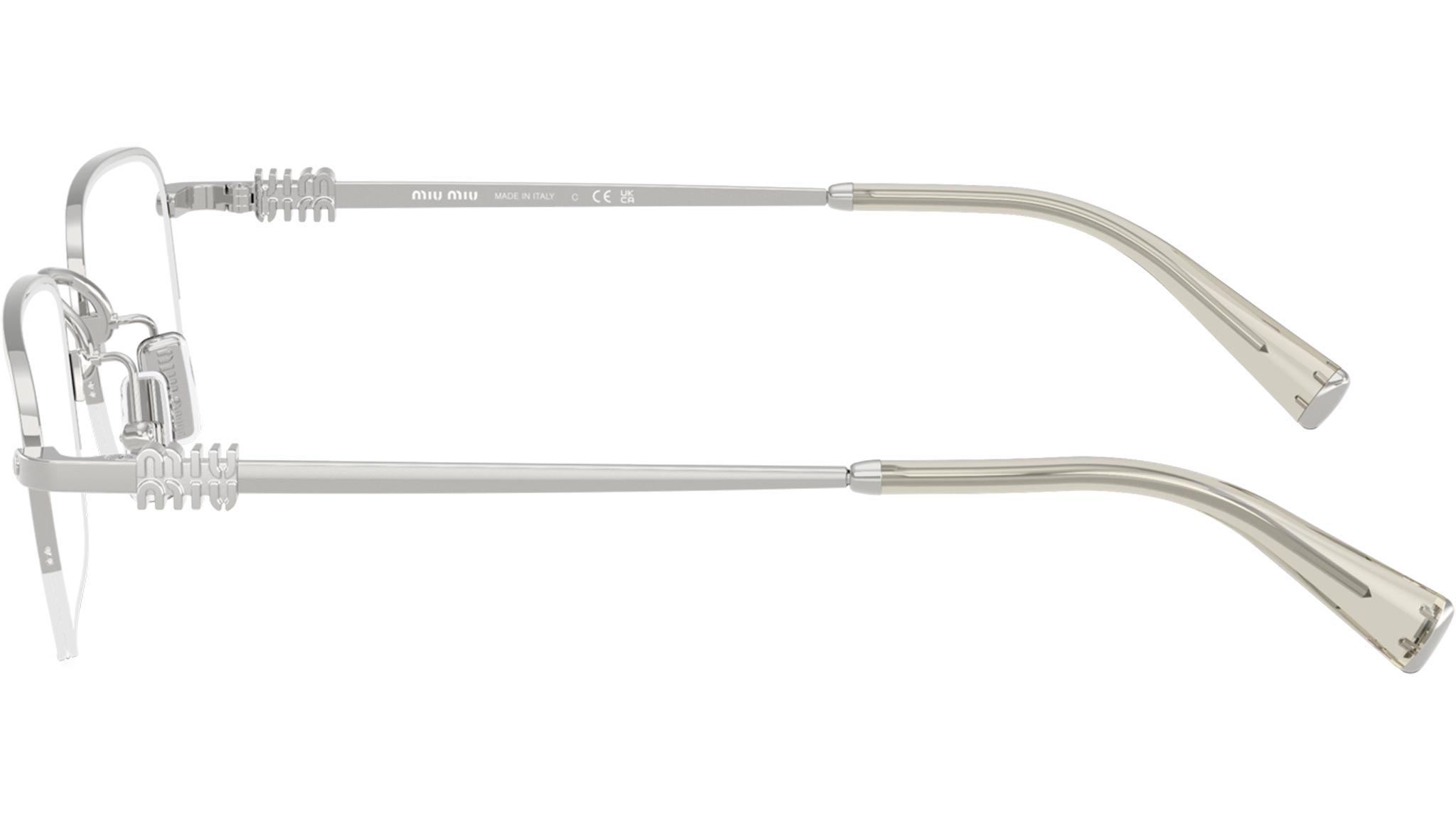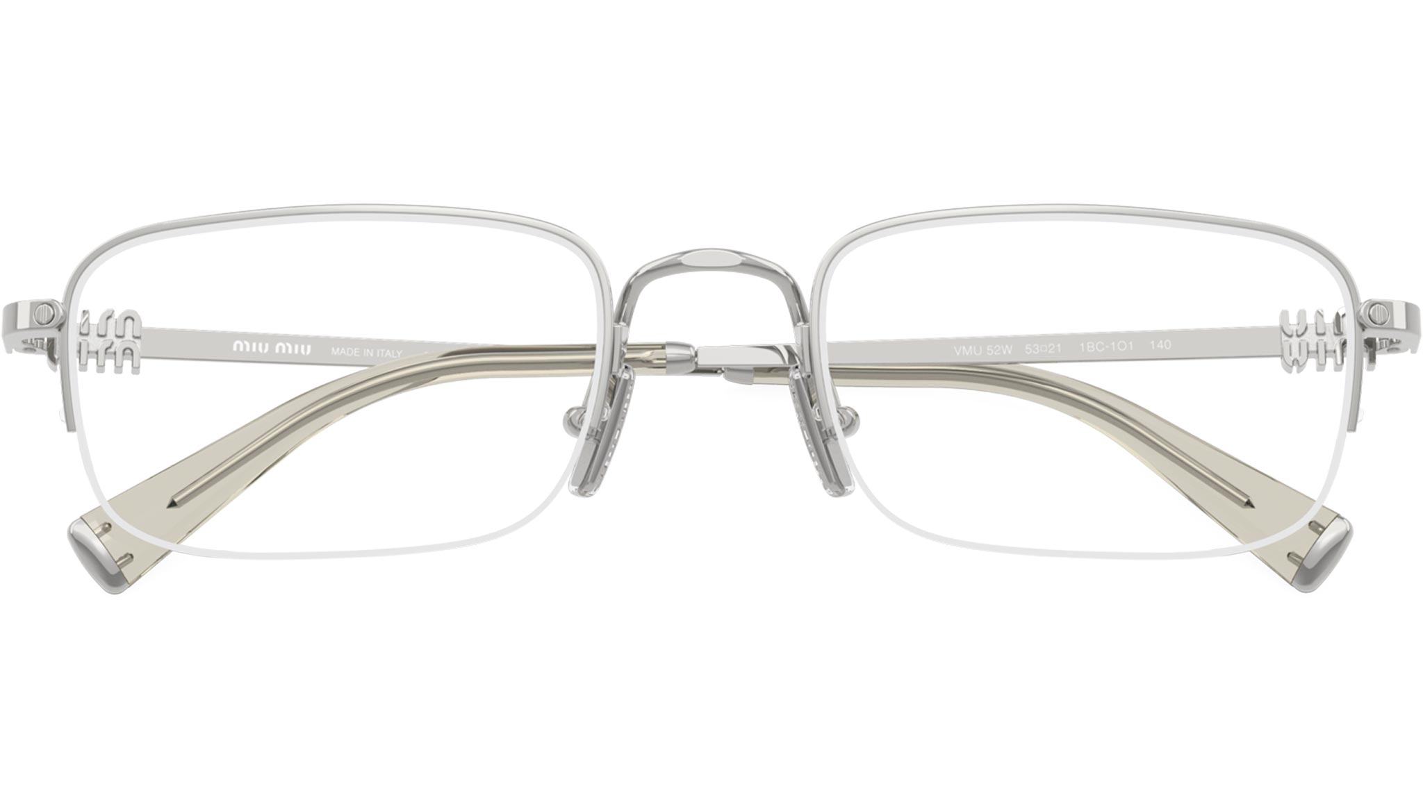 Occhiali da vista Miu Miu MU 52WV 1BC1O1 donna con montatura rettangolare in metallo argento e lenti demo. Naselli regolabili. Linea: Miu Regard. Codice modello: 0MU 52WV. Codice colore: 1BC1O1. Made in Italy. Rivenditore autorizzato Miu Miu online. Gli occhiali vengono consegnati con custodia e accessori originali e sono coperti dalla garanzia ufficiale di 12 mesi del produttore.