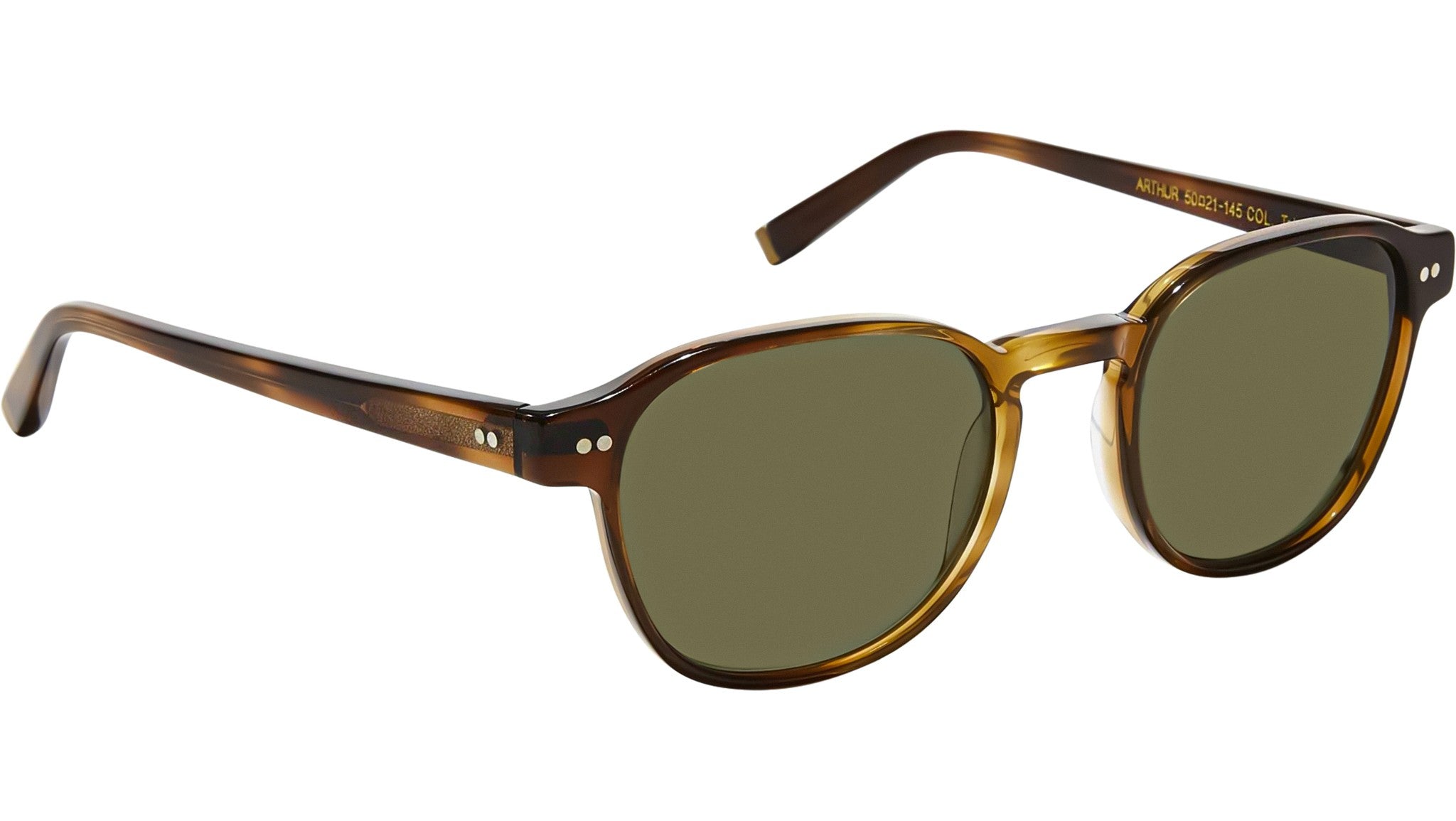 Occhiali da sole Moscot Arthur Sun unisex con montatura squadrata in acetato tabacco e lenti verde. Linea: Spirit. Codice modello: Arthur Sun. Codice colore: 2001. Rivenditore autorizzato Moscot online. Gli occhiali vengono consegnati con custodia e accessori originali e sono coperti dalla garanzia ufficiale di 12 mesi del produttore.
