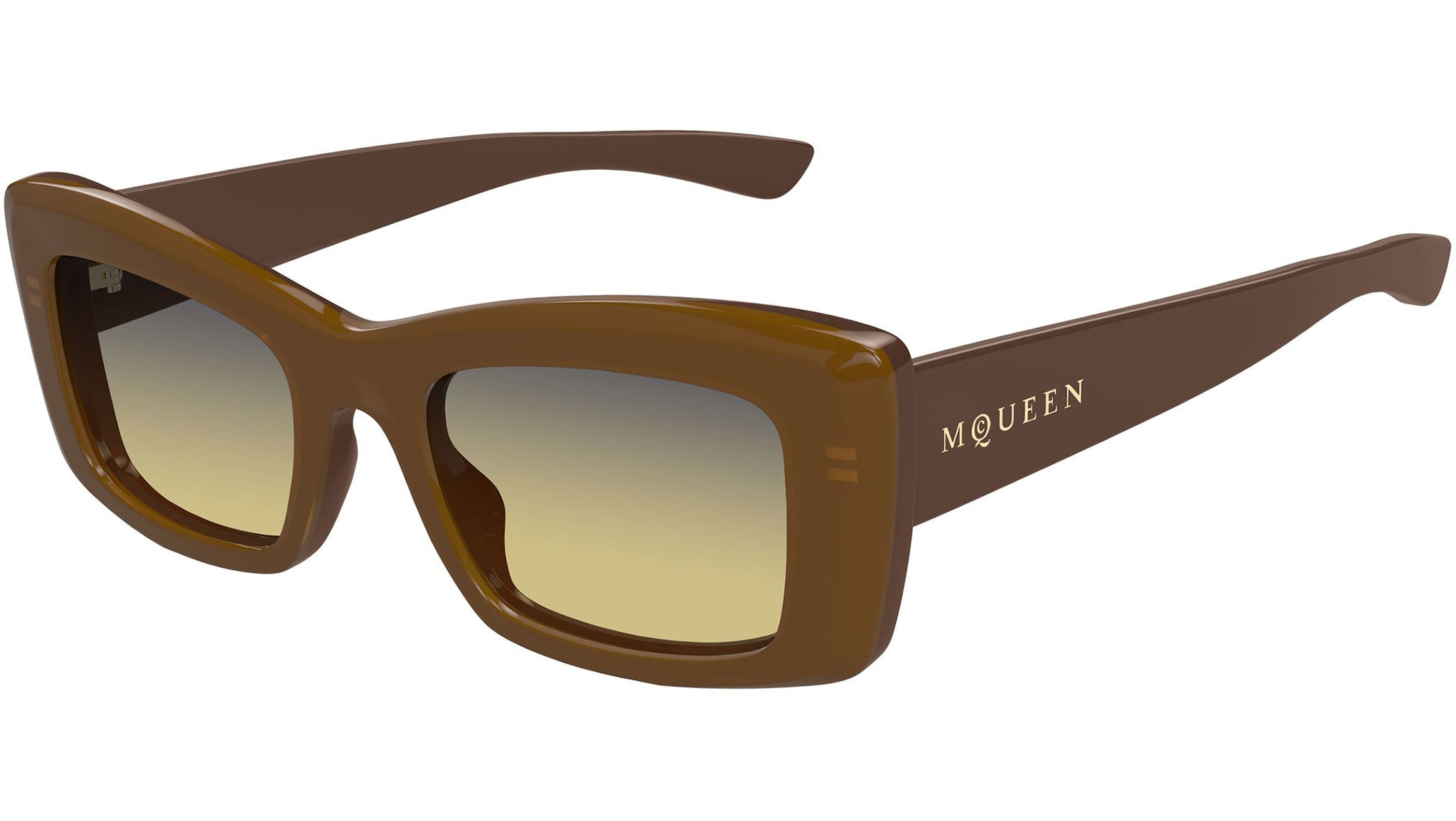 Occhiali da sole Alexander McQueen Logo modello AM0526S in acetato riciclato rettangolari codice colore 003 marrone miele bilayer marrone solido con aste marrone e lenti color marrone sfumato nicotine. Rivenditore autorizzato Alexander McQueen online. Gli occhiali vengono consegnati con custodia e accessori originali e sono coperti dalla garanzia ufficiale di 12 mesi del produttore.