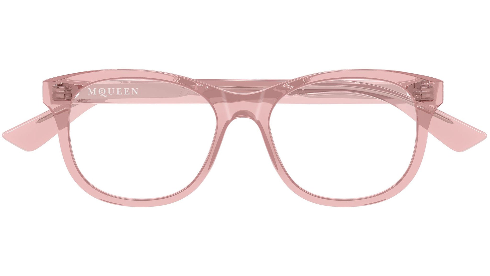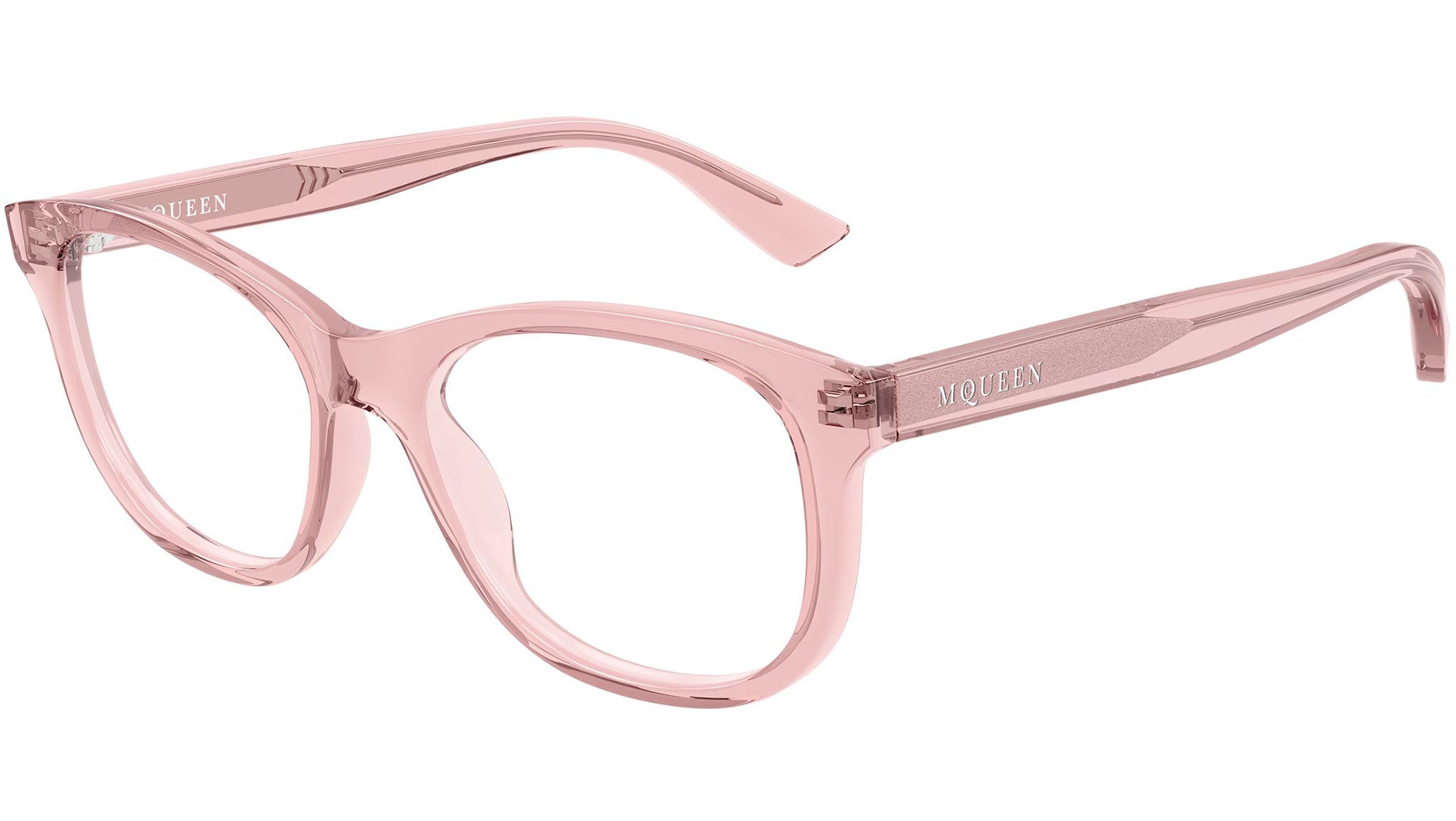 Occhiali da vista Alexander McQueen AM0568O 010 donna con montatura cat eye in acetato riciclato rosa trasparente lucido e lenti demo. Linea: Logo. Codice modello: AM0568O. Codice colore: 010. Made in Italy. Rivenditore autorizzato Alexander McQueen online. Gli occhiali vengono consegnati con custodia e accessori originali e sono coperti dalla garanzia ufficiale di 12 mesi del produttore.