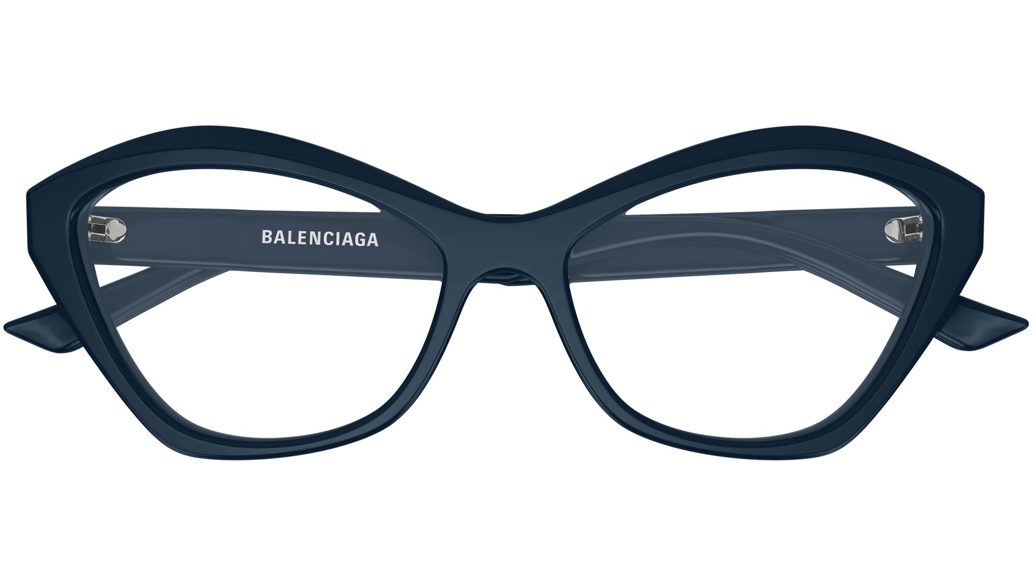 Occhiali da vista Balenciaga BB0341O 005 donna con montatura cat eye in acetato riciclato blu lucido tinta unita e lenti demo. Linea: Everyday. Codice modello: BB0341O. Codice colore: 005. Made in Italy. Rivenditore autorizzato Balenciaga online. Gli occhiali vengono consegnati con custodia e accessori originali e sono coperti dalla garanzia ufficiale di 12 mesi del produttore.