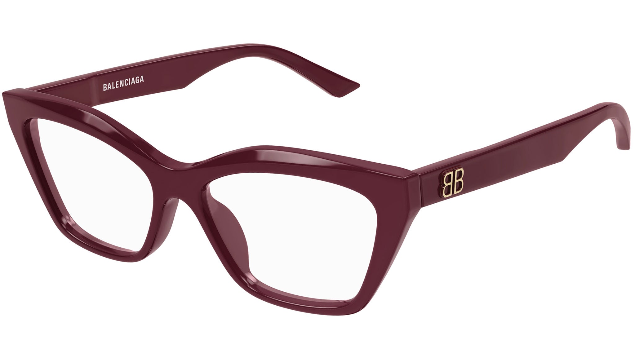 Occhiali da vista Balenciaga BB0342O 010 donna con montatura cat eye in acetato riciclato bordeaux tinta unita lucido e lenti demo. Linea: Everyday. Codice modello: BB0342O. Codice colore: 010. Made in Italy. Rivenditore autorizzato Balenciaga online. Gli occhiali vengono consegnati con custodia e accessori originali e sono coperti dalla garanzia ufficiale di 12 mesi del produttore.