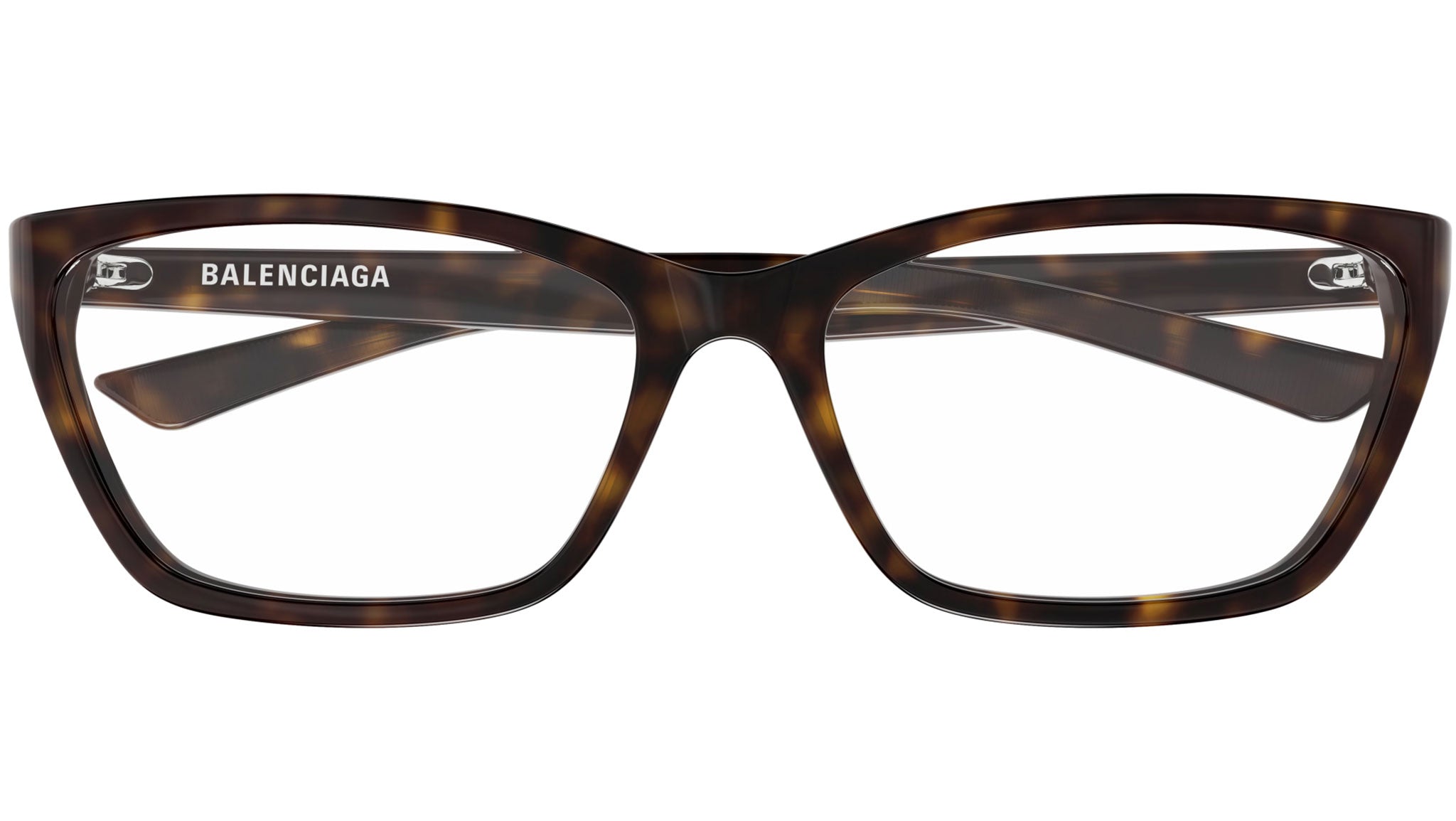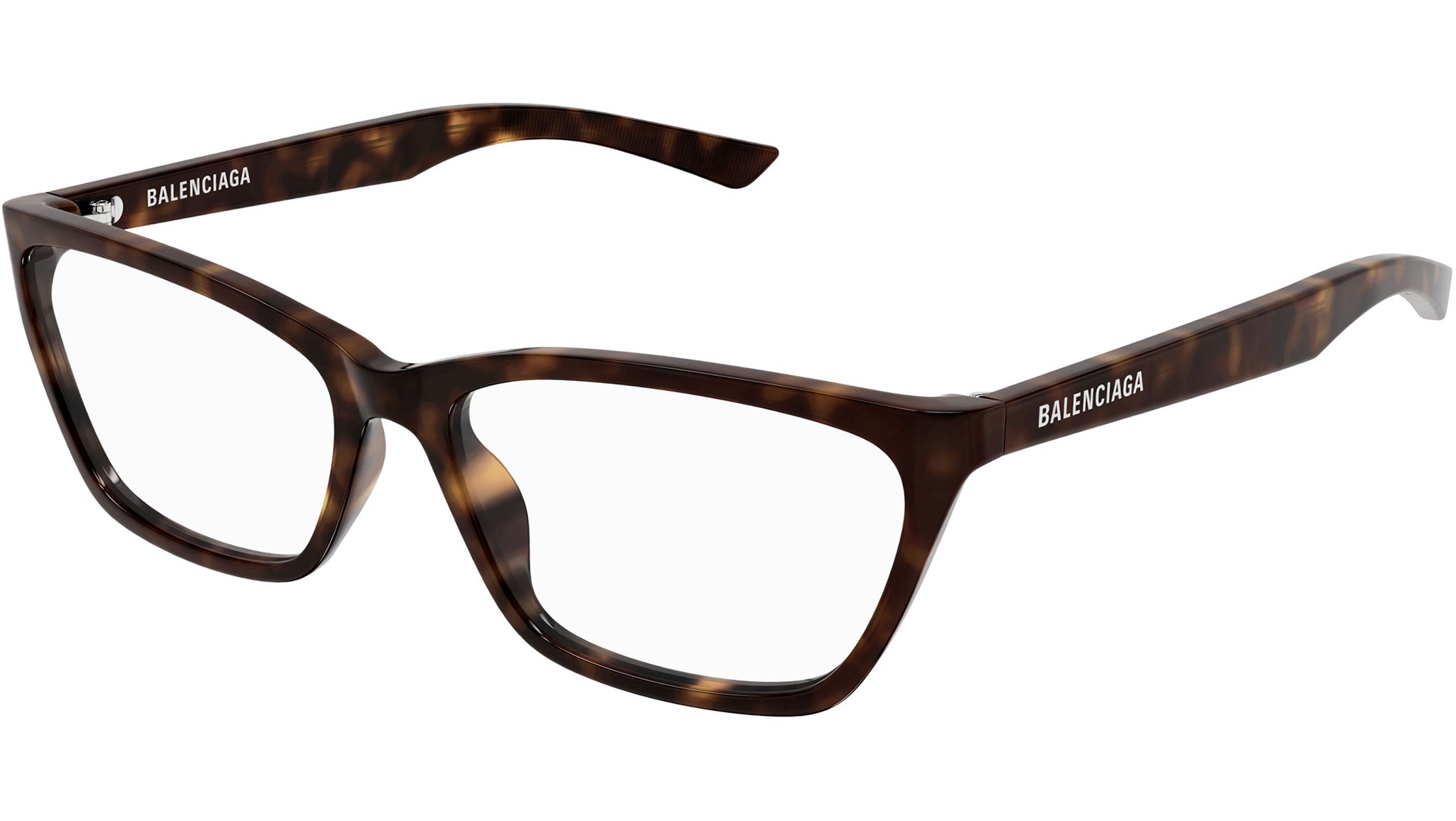 Occhiali da vista Balenciaga BB0406O 002 donna con montatura cat eye in acetato riciclato avana scuro lucido e lenti demo. Linea: Everyday. Codice modello: BB0406O. Codice colore: 002. Made in Italy. Rivenditore autorizzato Balenciaga online. Gli occhiali vengono consegnati con custodia e accessori originali e sono coperti dalla garanzia ufficiale di 12 mesi del produttore.
