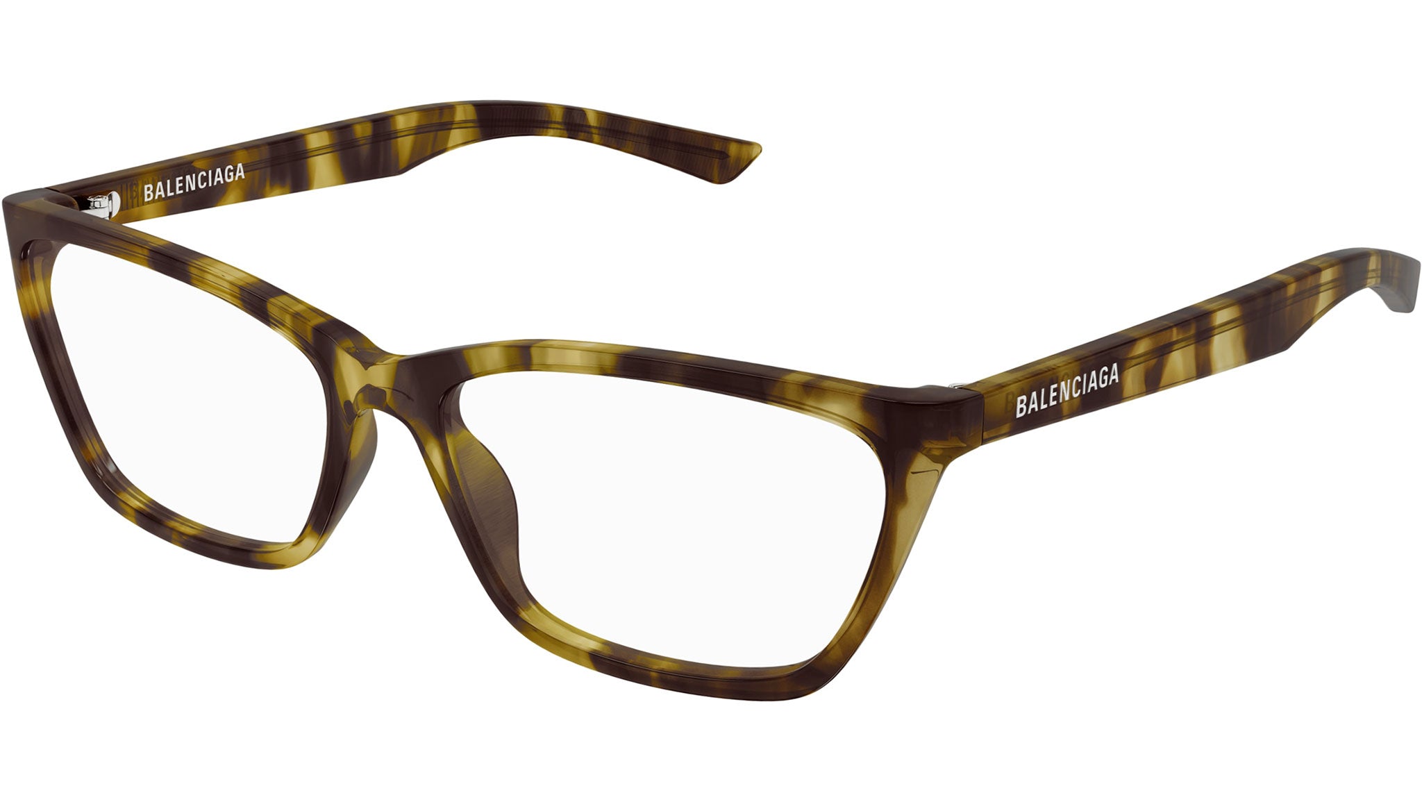 Occhiali da vista Balenciaga BB0406O 003 donna con montatura cat eye in acetato riciclato avana verde lucido e lenti demo. Linea: Everyday. Codice modello: BB0406O. Codice colore: 003. Made in Italy. Rivenditore autorizzato Balenciaga online. Gli occhiali vengono consegnati con custodia e accessori originali e sono coperti dalla garanzia ufficiale di 12 mesi del produttore.