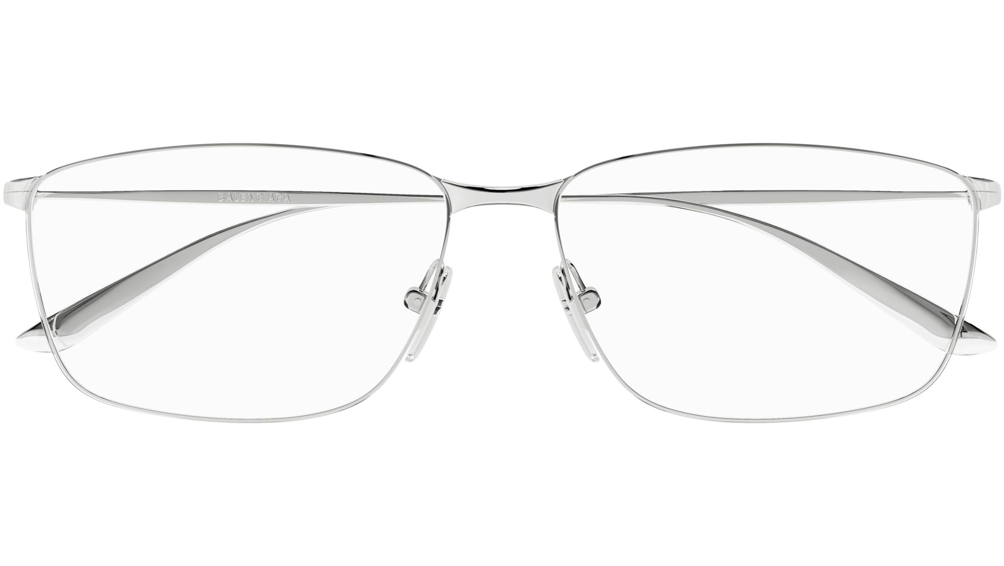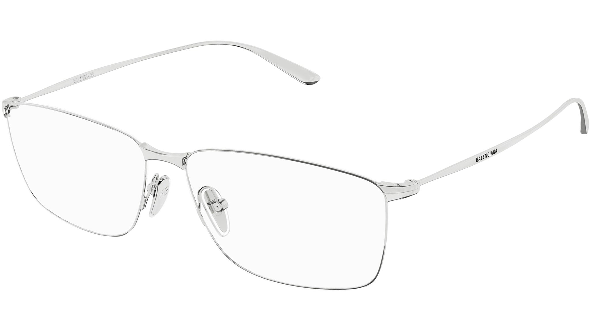 Occhiali da vista Balenciaga BB0415O 002 uomo con montatura rettangolare in metallo argento lucido e lenti demo. Linea: Everyday. Codice modello: BB0415O. Codice colore: 002. Made in Japan. Rivenditore autorizzato Balenciaga online. Gli occhiali vengono consegnati con custodia e accessori originali e sono coperti dalla garanzia ufficiale di 12 mesi del produttore.