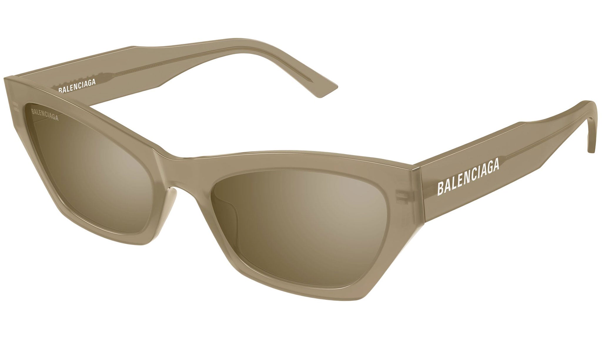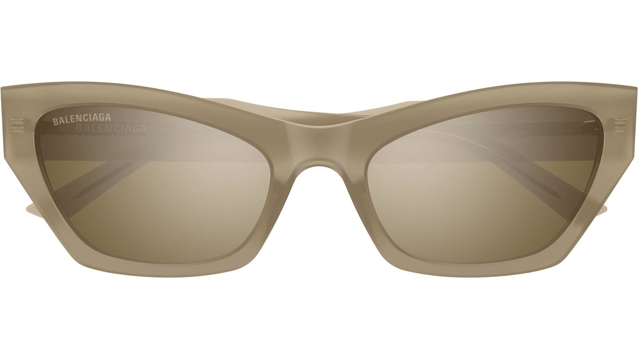 Occhiali da sole Balenciaga BB0447S 004 donna con montatura cat eye in acetato riciclato greige opale lucido e lenti marrone solido / flash canna di fucile. Linea: Everyday. Codice modello: BB0447S. Codice colore: 004. Made in Italy. Rivenditore autorizzato Balenciaga online. Gli occhiali vengono consegnati con custodia e accessori originali e sono coperti dalla garanzia ufficiale di 12 mesi del produttore.