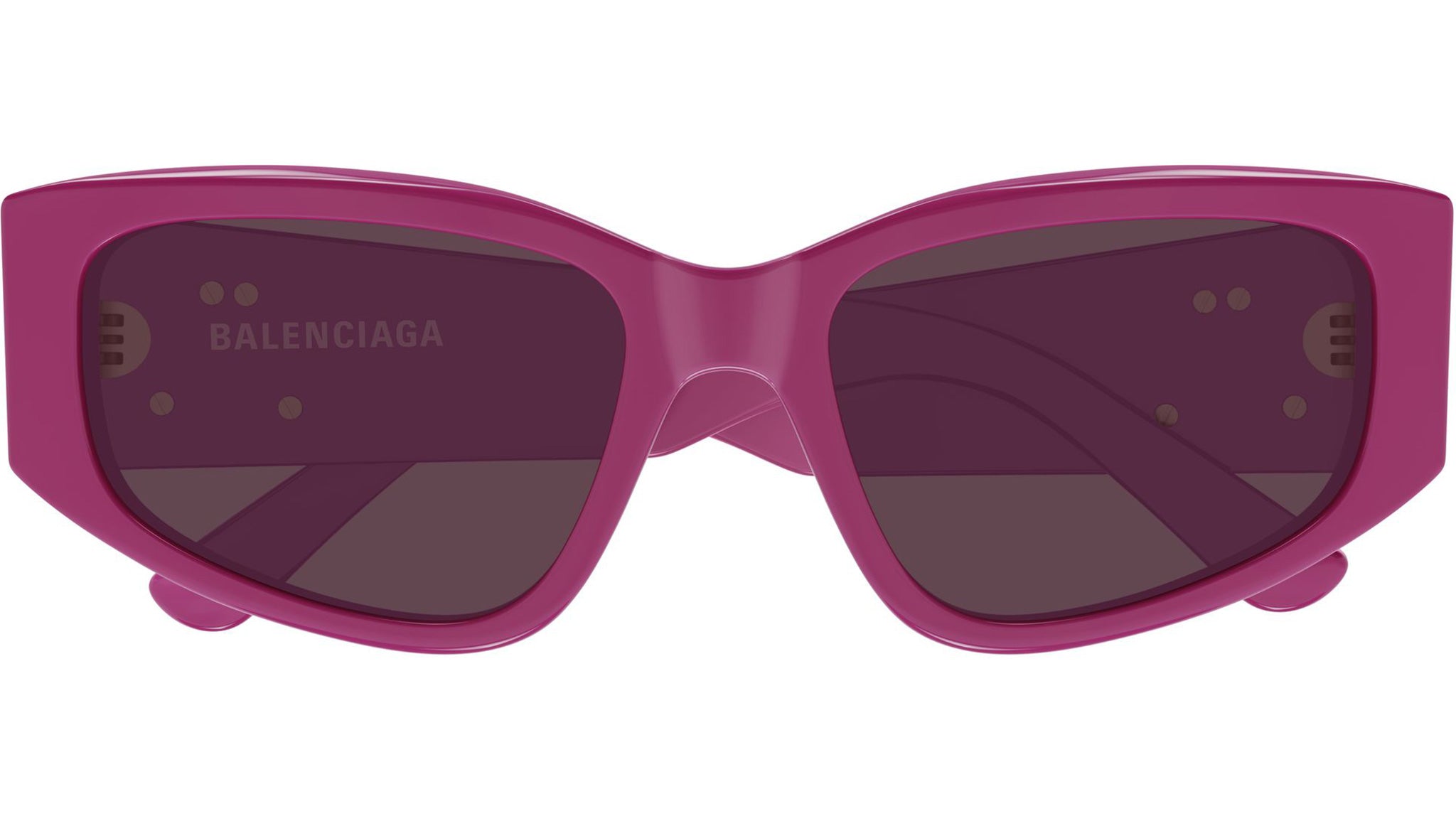 Occhiali da sole Balenciaga BB0475S 004 donna con montatura cat eye in acetato riciclato fuchsia solido lucido e lenti viola scuro solido. Linea: Everyday. Codice modello: BB0475S. Codice colore: 004. Made in Italy. Rivenditore autorizzato Balenciaga online. Gli occhiali vengono consegnati con custodia e accessori originali e sono coperti dalla garanzia ufficiale di 12 mesi del produttore.
