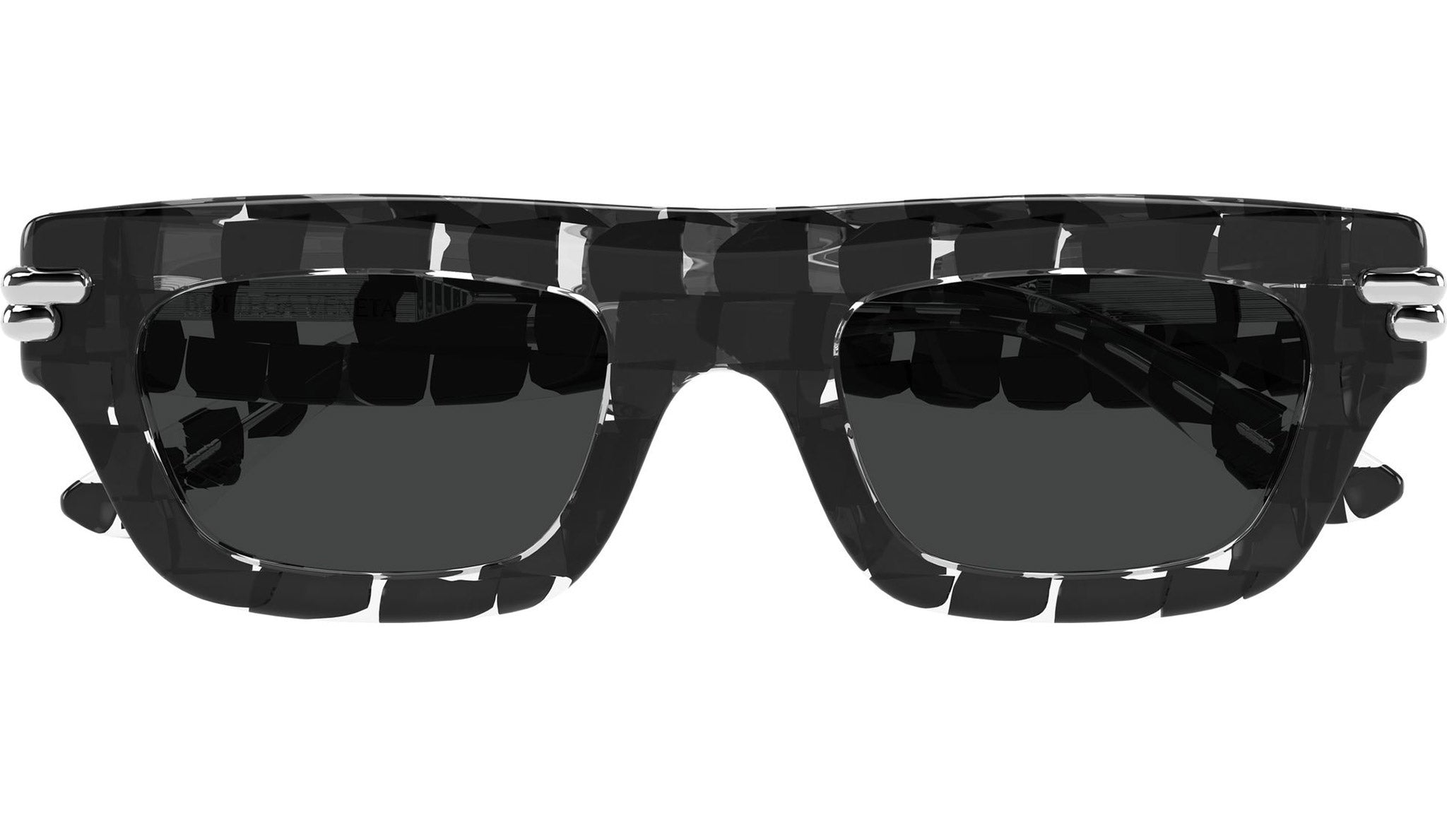 Occhiali da sole Bottega Veneta BV1321S 005 unisex con montatura rettangolare in acetato riciclato nero solido lucido / motivo intreccio cristallo e lenti grigio tinta unita. Linea: Ribbon. Codice modello: BV1321S. Codice colore: 005. Made in Japan. Rivenditore autorizzato Bottega Veneta online. Gli occhiali vengono consegnati con custodia e accessori originali e sono coperti dalla garanzia ufficiale di 12 mesi del produttore.