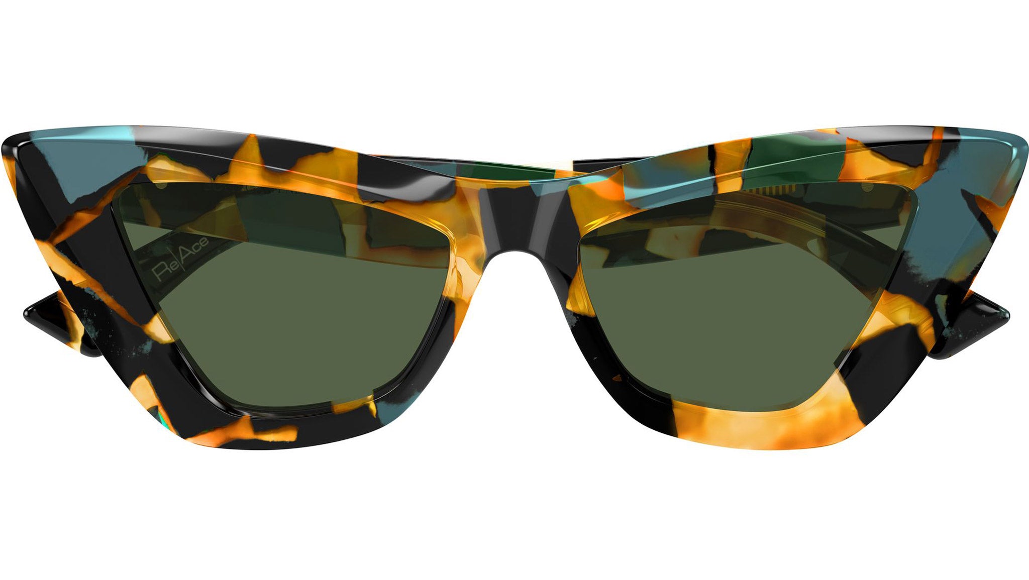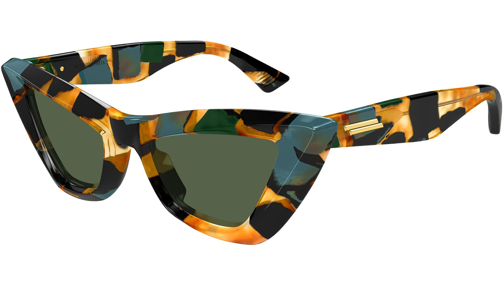 Occhiali da sole Bottega Veneta BV1391S 001 donna con montatura cat eye in acetato riciclato nero e verde ottanio lucido intrecciato e lenti verde bottiglia tinta unita. Linea: Ribbon. Codice modello: BV1391S. Codice colore: 001. Made in Italy. Rivenditore autorizzato Bottega Veneta online. Gli occhiali vengono consegnati con custodia e accessori originali e sono coperti dalla garanzia ufficiale di 12 mesi del produttore.