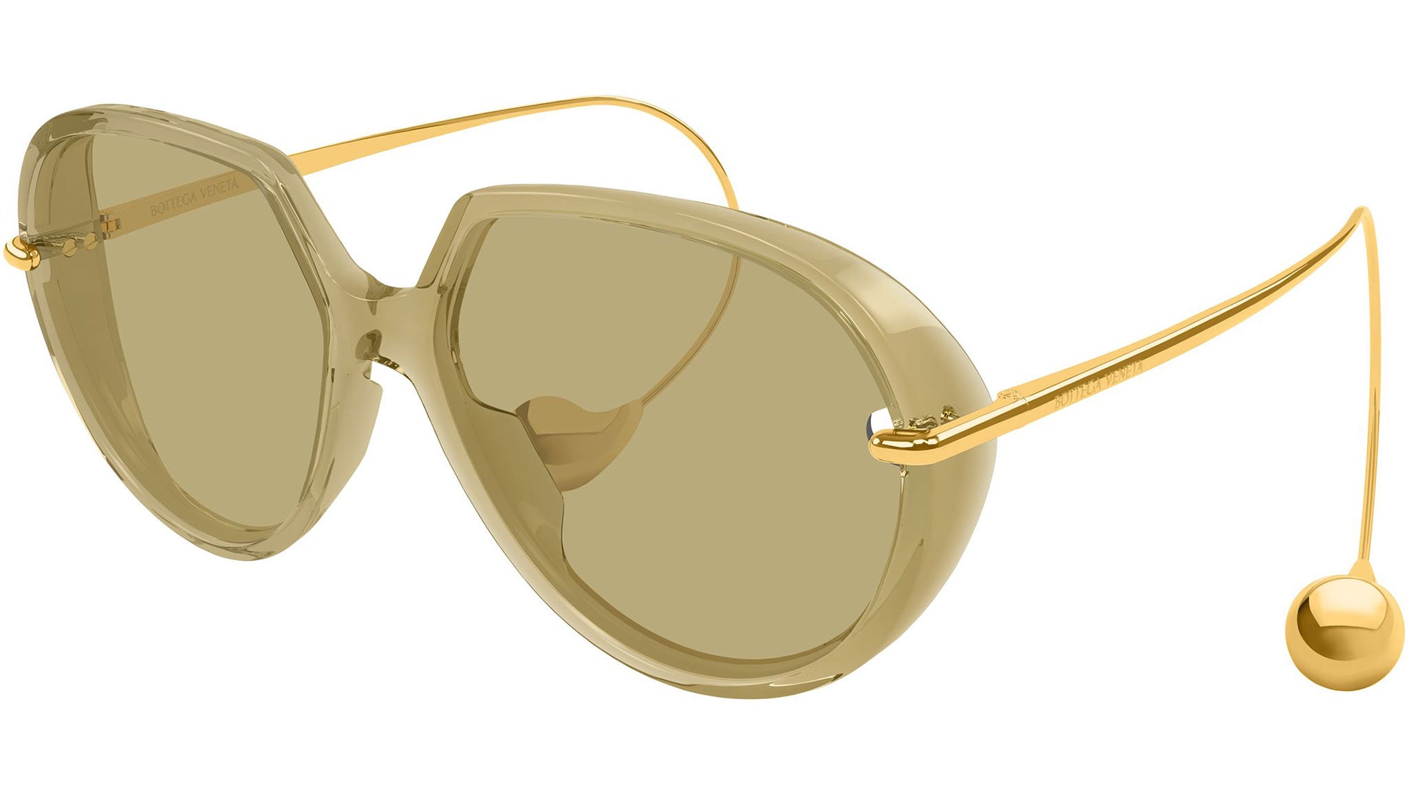 Occhiali da sole Bottega Veneta BV1436S 004 unisex con montatura geometrica in acetato riciclato senape trasparente lucido e lenti beige nicotina tinta unita. Linea: . Codice modello: BV1436S. Codice colore: 004. Made in Japan. Rivenditore autorizzato Bottega Veneta online. Gli occhiali vengono consegnati con custodia e accessori originali e sono coperti dalla garanzia ufficiale di 12 mesi del produttore.