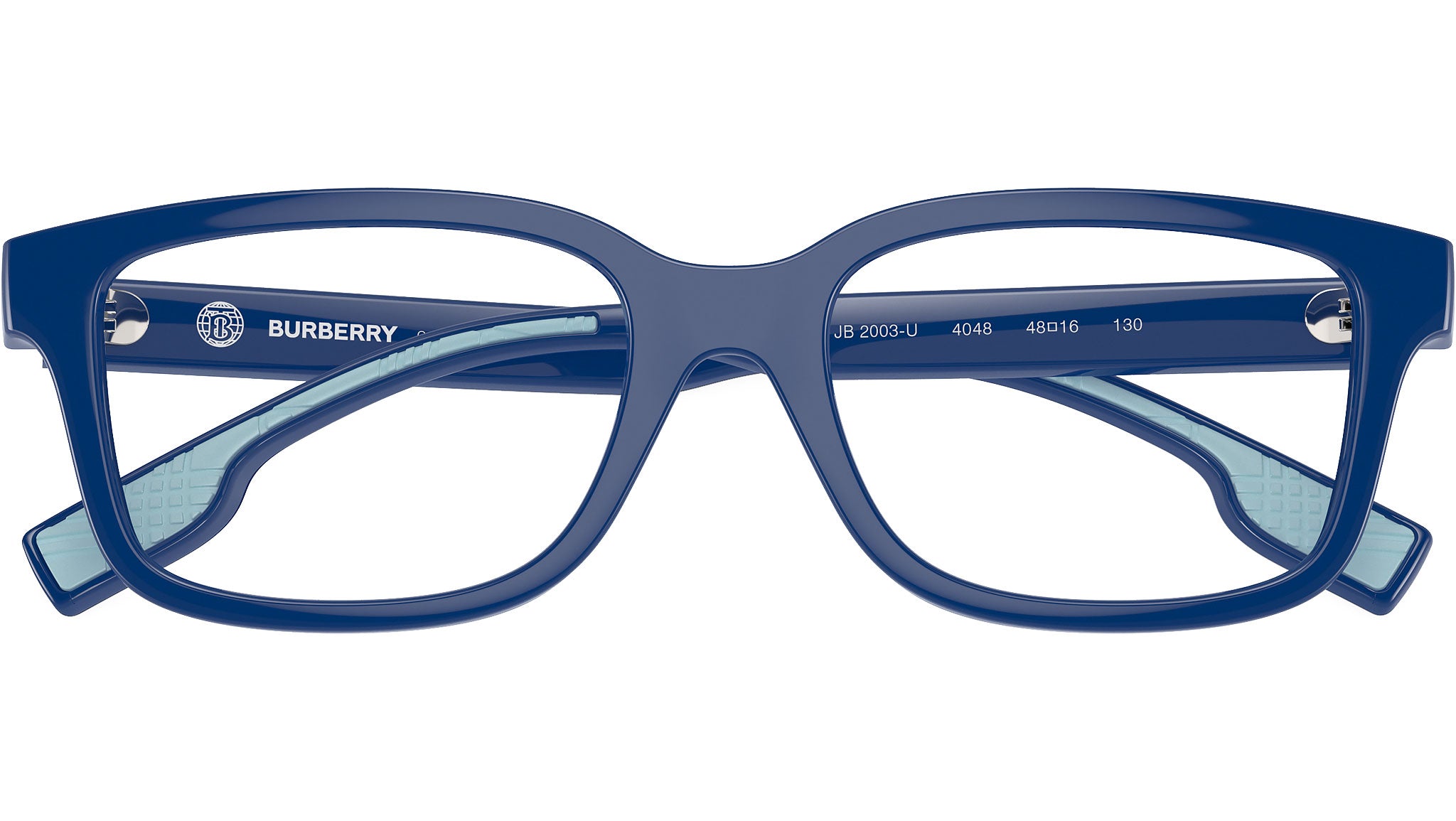 Occhiali da vista Burberry da bambino modello JB2003U 4048 con montatura full rim in iniettato blu e lenti demo. Fit universale. Fitting consigliato: L. Linea: Kids. Codice modello: 0JB2003U. Codice colore: 4048. Rivenditore autorizzato online Burberry Kids. Gli occhiali includono la custodia e gli accessori originali e sono coperti da una garanzia globale di 12 mesi.