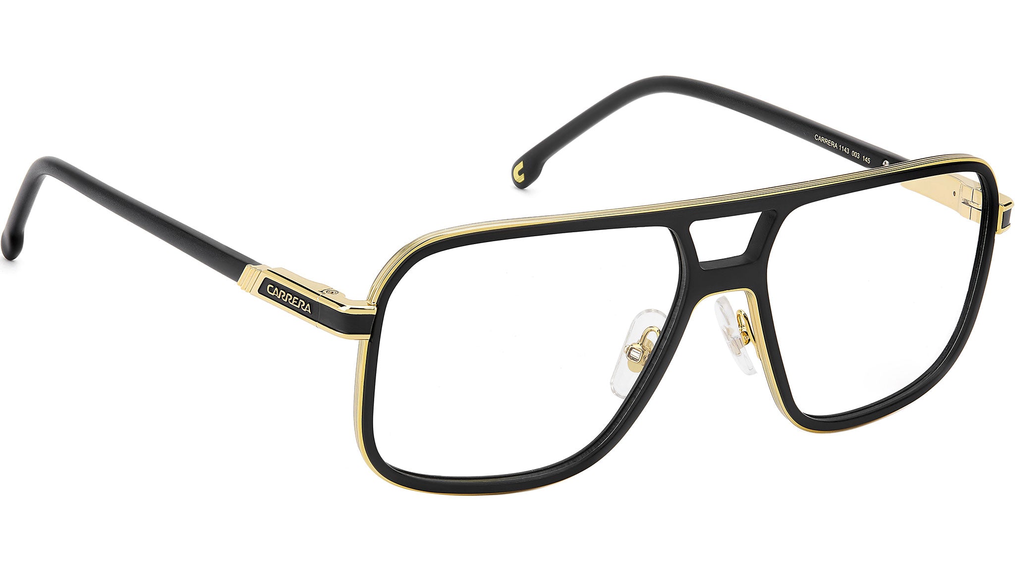 Occhiali da vista Carrera 1143 003 uomo con montatura quadrata in metallo nero opaco e lenti demo. Occhiali da vista Carrera dallo stile audace. Il frontale navigator è sfrontato, costruito in acciaio inossidabile e rivestito con inserti plastici. Le aste si ispirano al design d’archivio Carrera: un dettaglio senza tempo. La montatura veste confortevole sul volto perché leggera, completata da cerniere flessibili e naselli regolabili. Linea: Flag. Codice modello: 110195. Codice colore: 003. Rivenditore autorizzato Carrera online. Gli occhiali vengono consegnati con custodia e accessori originali e sono coperti dalla garanzia ufficiale di 12 mesi del produttore.