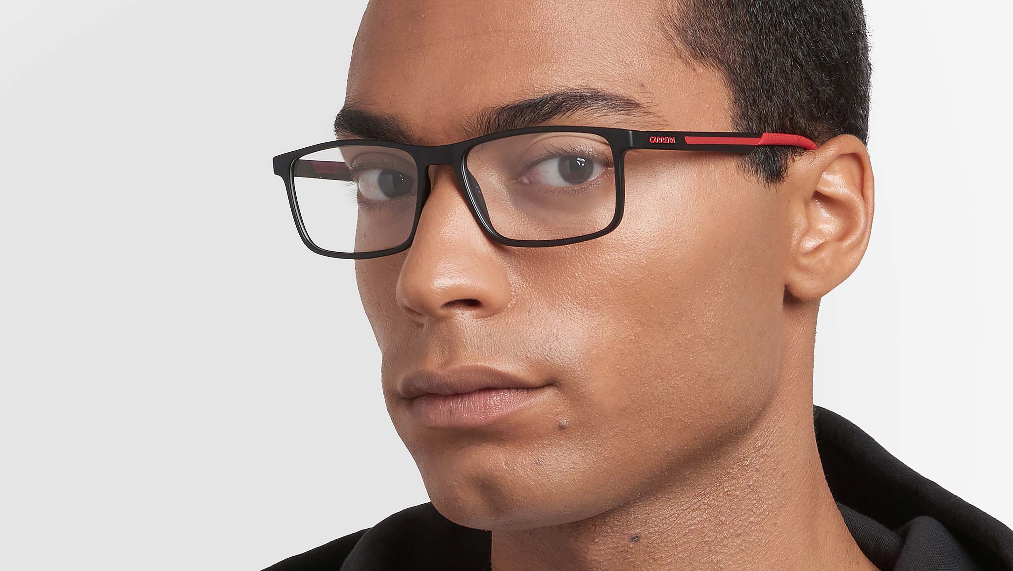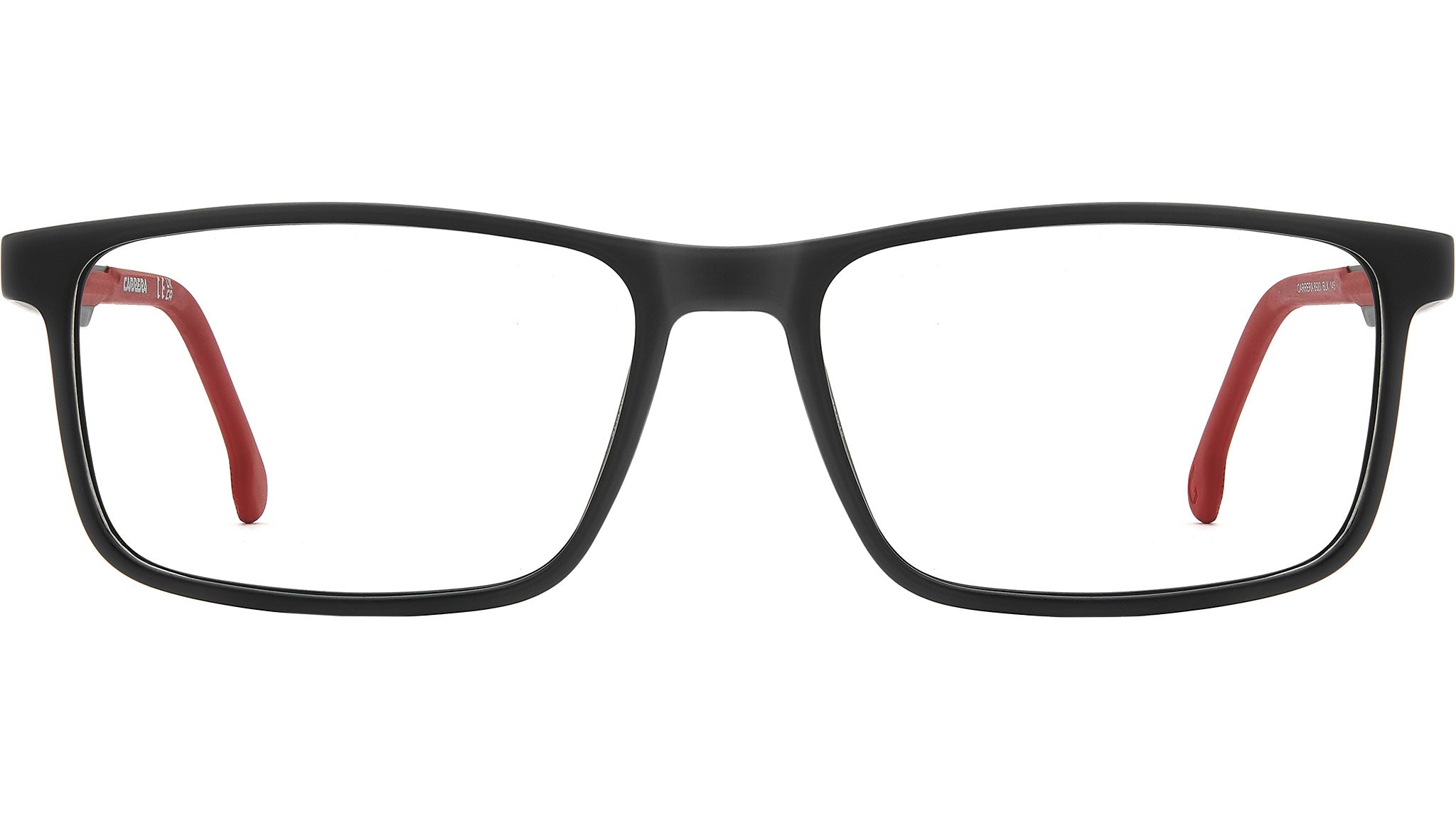 Occhiali da vista Carrera 8920 BLX uomo con montatura rettangolare in poliammide ecologica nero opaco rosso e lenti demo. Questi occhiali da vista Carrera fondono estetica active e stile moderno. Il frontale rettangolare è leggero sul volto, i terminali regolabili garantiscono una vestibilità perfetta. Il modello si indossa con facilità tutto il giorno. Da scegliere nelle tinte più accese per un richiamo sportivo evidente. Linea: Sport. Codice modello: 110262. Codice colore: BLX. Rivenditore autorizzato Carrera online. Gli occhiali vengono consegnati con custodia e accessori originali e sono coperti dalla garanzia ufficiale di 12 mesi del produttore.