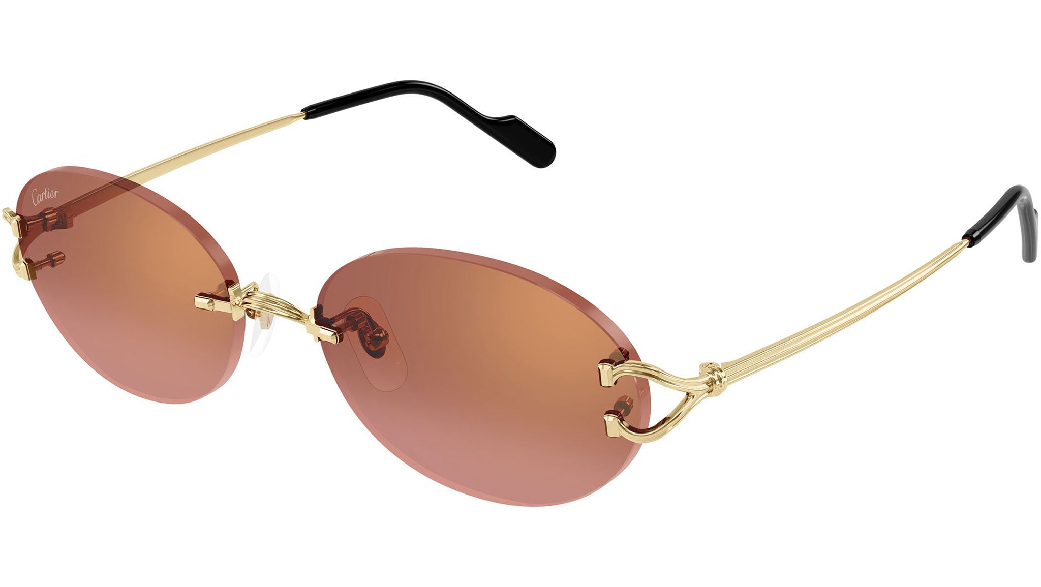 Occhiali da sole Cartier CT0551S 005 unisex con montatura ovale in metallo color oro finitura smooth e lenti marrone rossastro e arancio sfumati con flash dorato. Linea: Core Range. Codice modello: CT0551S. Codice colore: 005. Made in France. Rivenditore autorizzato Cartier online. Gli occhiali vengono consegnati con custodia e accessori originali e sono coperti dalla garanzia ufficiale di 12 mesi del produttore.