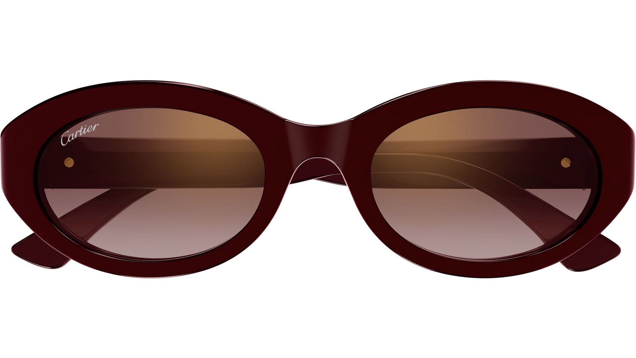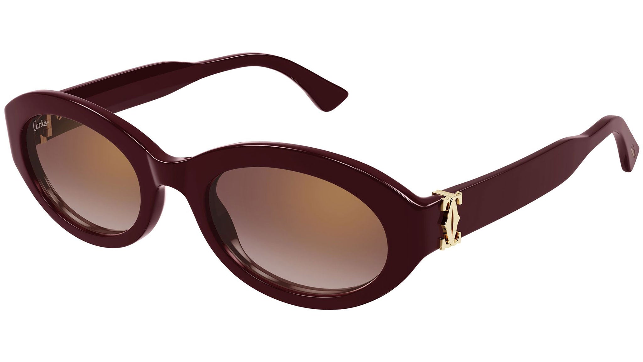 Occhiali da sole Cartier CT0588S 003 donna con montatura ovale in acetato riciclato color bordeaux e lenti burgundy sfumato con flash dorato. Linea: Contemporary. Codice modello: CT0588S. Codice colore: 003. Made in Italy. Rivenditore autorizzato Cartier online. Gli occhiali vengono consegnati con custodia e accessori originali e sono coperti dalla garanzia ufficiale di 12 mesi del produttore.