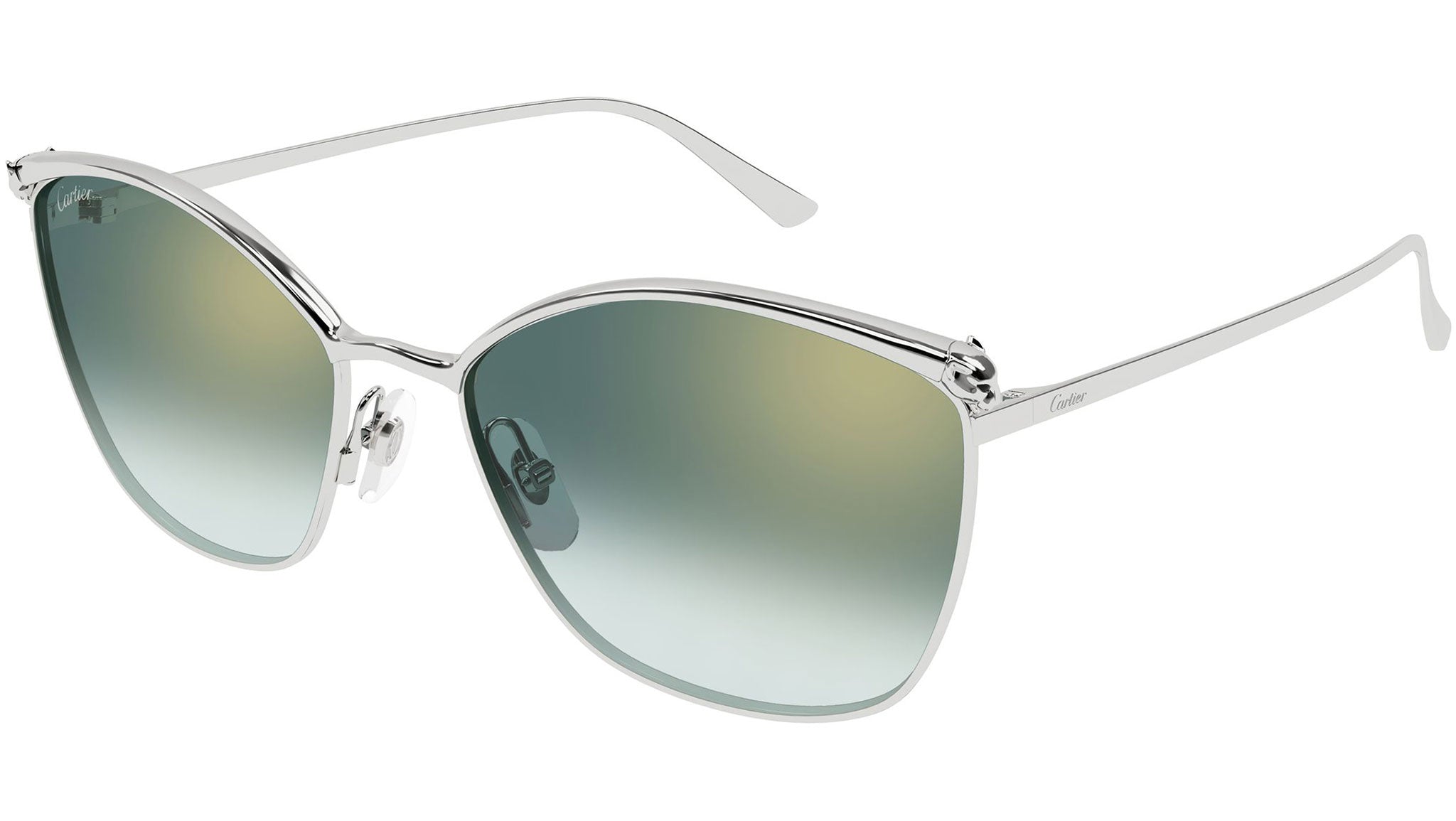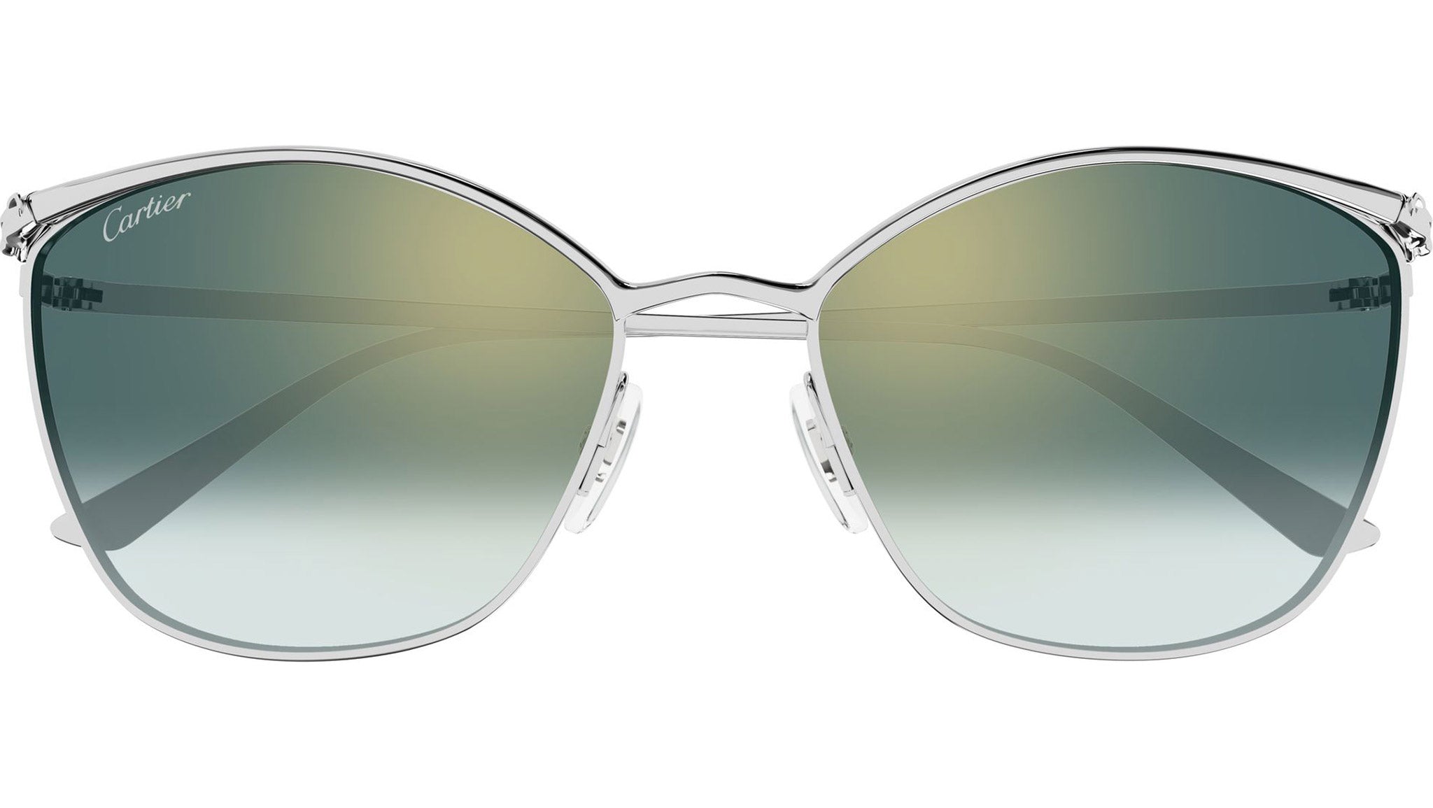 Occhiali da sole Cartier CT0595S 003 donna con montatura cat eye in metallo color platino finish satinato e lenti petrolio sfumato con flash dorato. Linea: Core Range. Codice modello: CT0595S. Codice colore: 003. Made in Italy. Rivenditore autorizzato Cartier online. Gli occhiali vengono consegnati con custodia e accessori originali e sono coperti dalla garanzia ufficiale di 12 mesi del produttore.