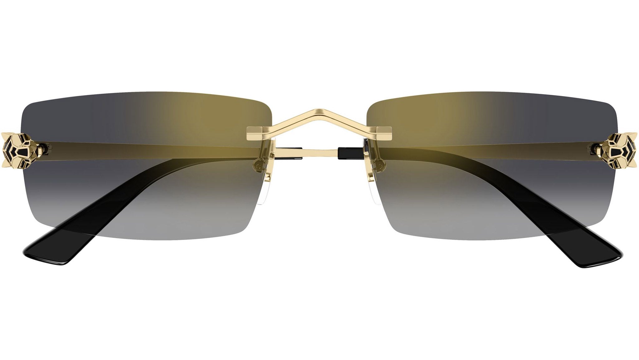 Occhiali da sole Cartier CT0598S 001 unisex con montatura rettangolare in metallo color oro finitura smooth e lenti grigio sfumato con flash dorato. Linea: Exception. Codice modello: CT0598S. Codice colore: 001. Made in Italy. Rivenditore autorizzato Cartier online. Gli occhiali vengono consegnati con custodia e accessori originali e sono coperti dalla garanzia ufficiale di 12 mesi del produttore.