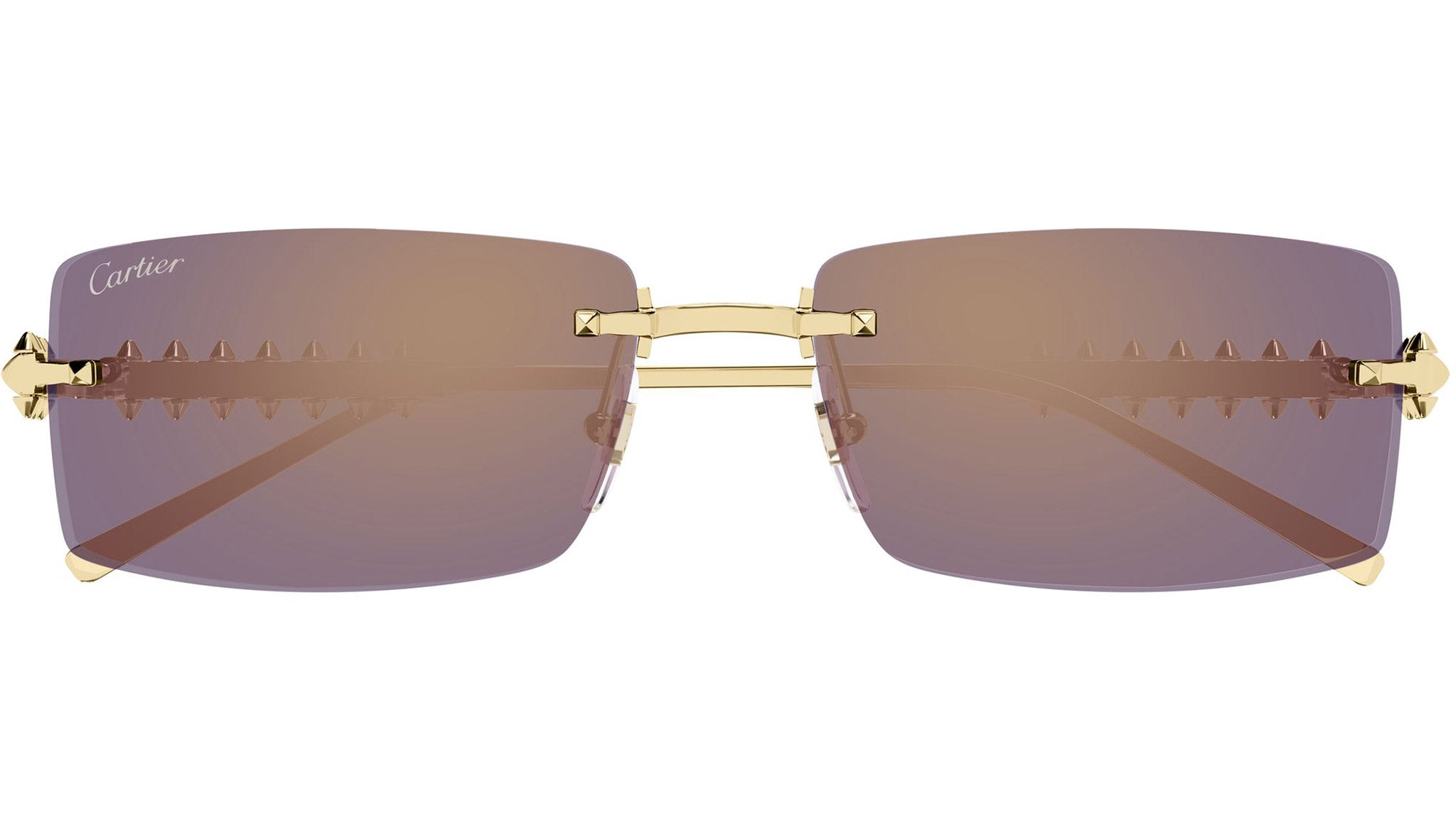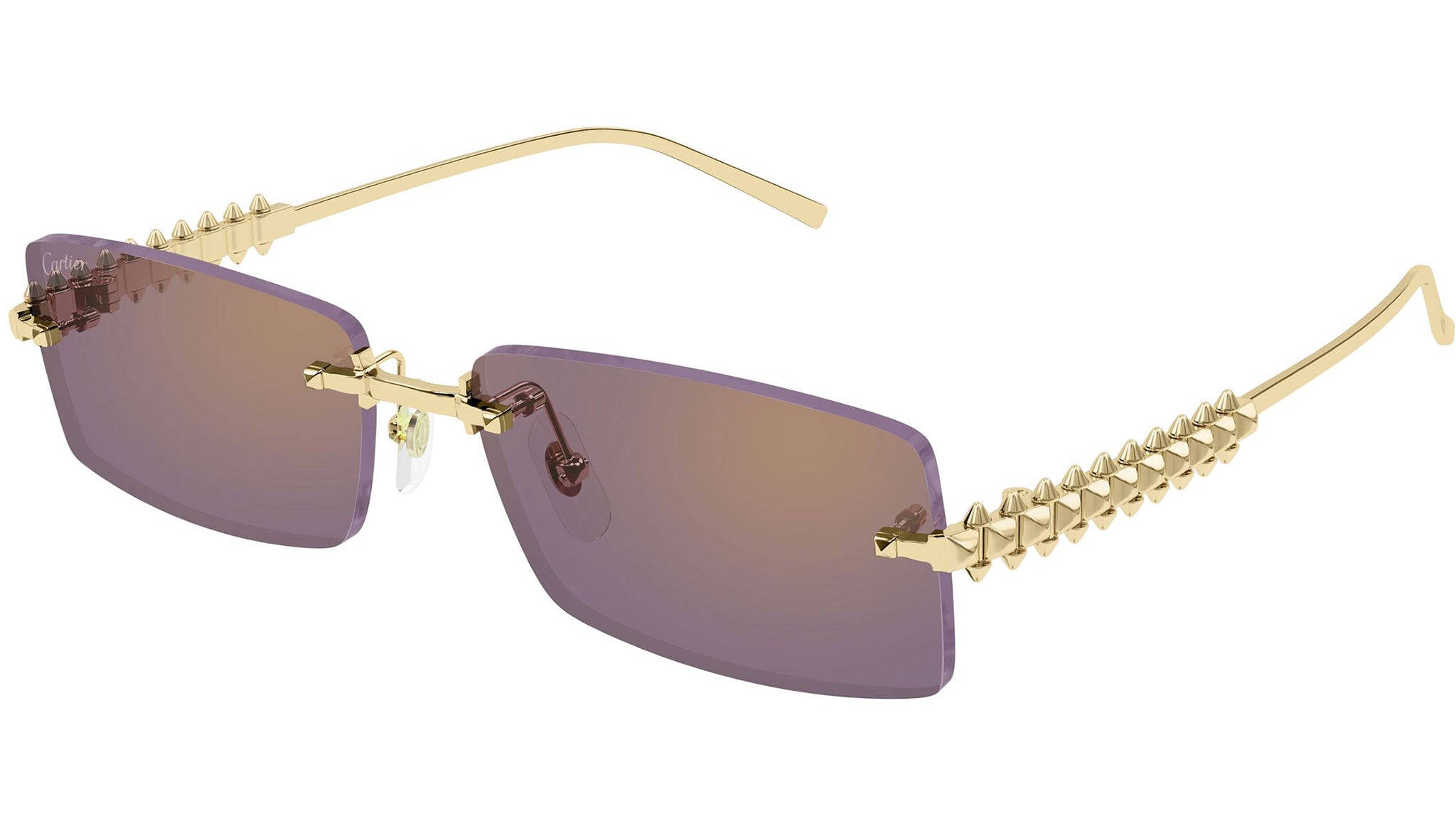 Occhiali da sole Cartier CT0604S 003 unisex con montatura rettangolare in metallo color oro finitura smooth e lenti viola con flash oro. Linea: Exception. Codice modello: CT0604S. Codice colore: 003. Made in France. Rivenditore autorizzato Cartier online. Gli occhiali vengono consegnati con custodia e accessori originali e sono coperti dalla garanzia ufficiale di 12 mesi del produttore.