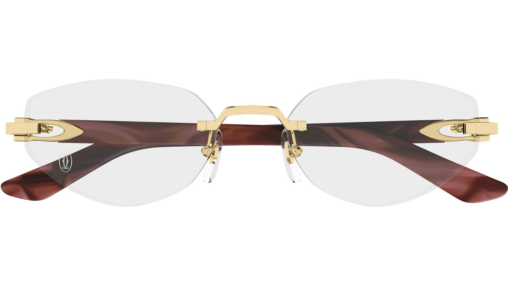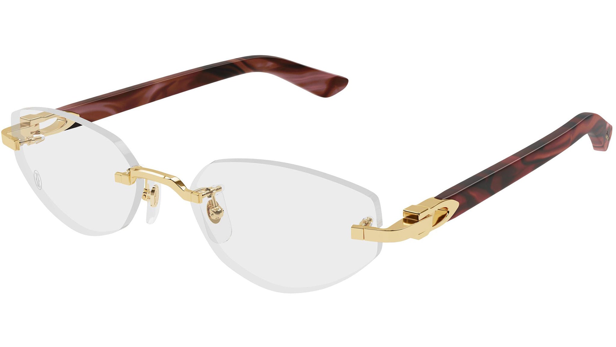 Occhiali da vista Cartier CT0609O 002 donna con montatura cat eye in metallo color oro finitura smooth e lenti demo. Linea: Core Range. Codice modello: CT0609O. Codice colore: 002. Made in France. Rivenditore autorizzato Cartier online. Gli occhiali vengono consegnati con custodia e accessori originali e sono coperti dalla garanzia ufficiale di 12 mesi del produttore.