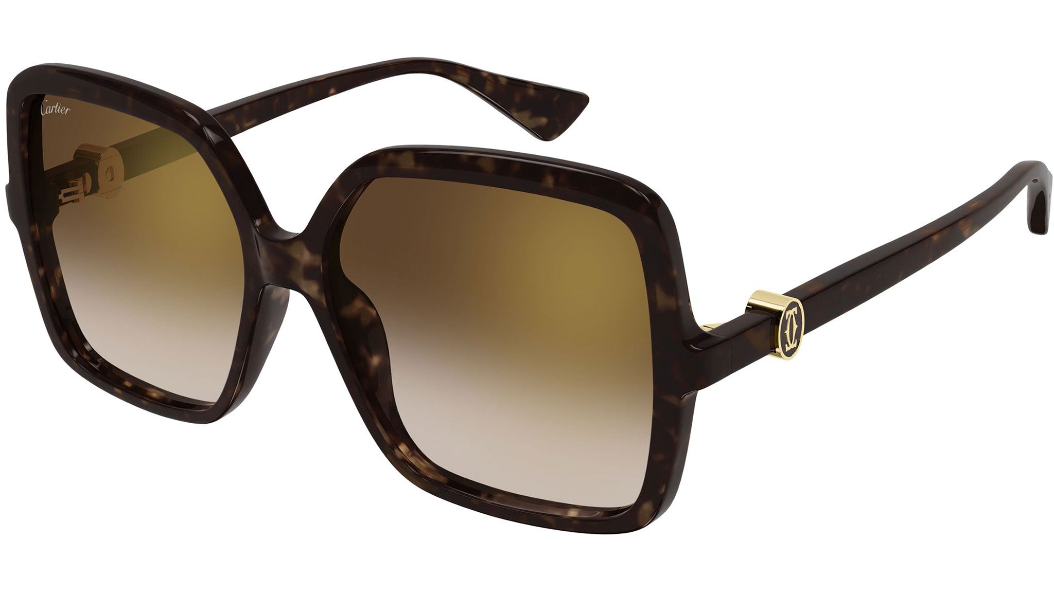 Occhiali da sole Cartier CT0641S 002 donna con montatura rettangolare in acetato riciclato color tartaruga scuro e lenti marrone sfumato / flash oro. Linea: Contemporary. Codice modello: CT0641S. Codice colore: 002. Made in Italy. Rivenditore autorizzato Cartier online. Gli occhiali vengono consegnati con custodia e accessori originali e sono coperti dalla garanzia ufficiale di 12 mesi del produttore.