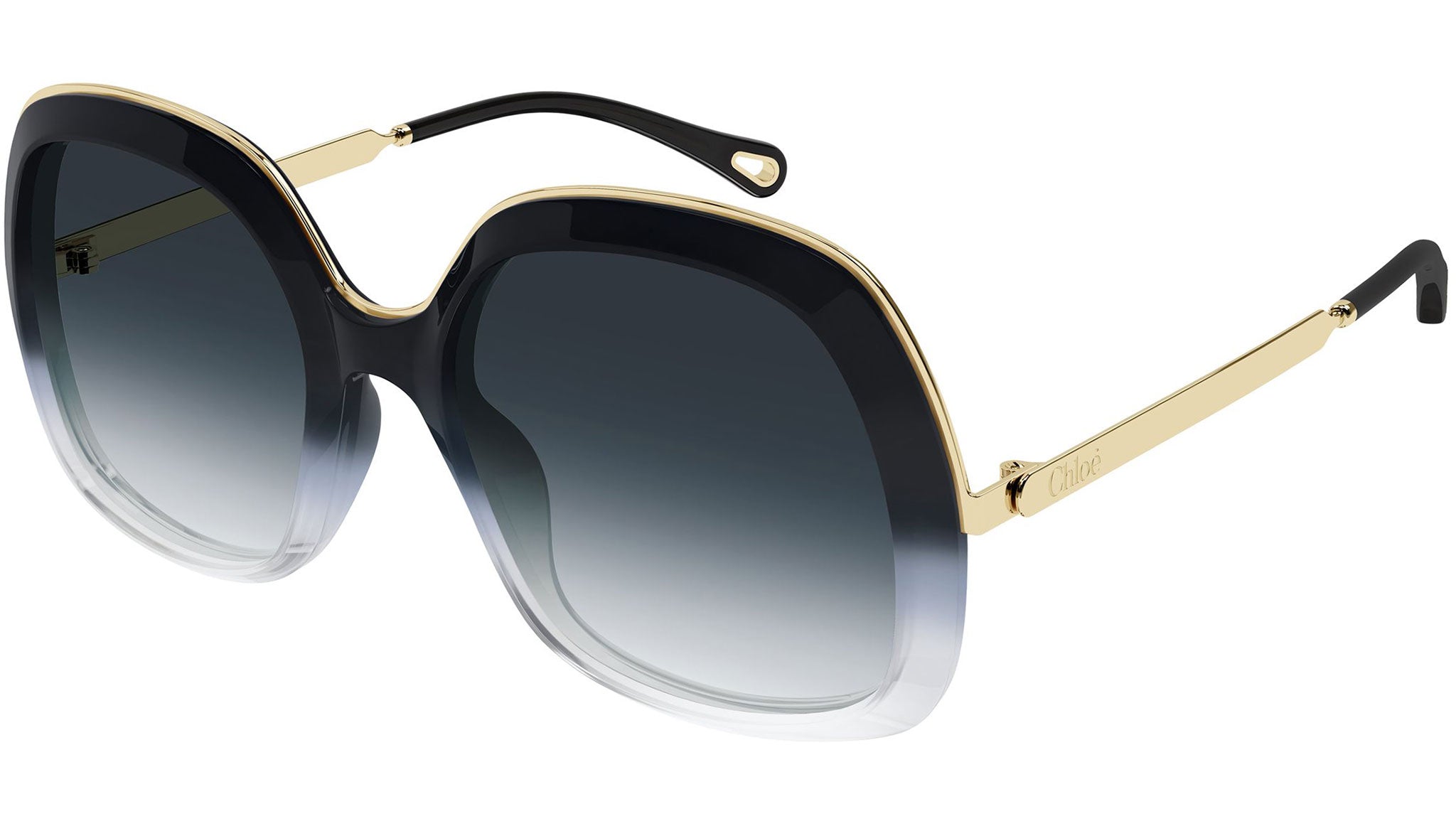 Occhiali da sole Chloé CH0327S 005 donna con montatura rettangolare in acetato riciclato nero opale sfumato lucido a cristallo trasparente e lenti sfulatura grigio-verde. Linea: Chloé. Codice modello: CH0327S. Codice colore: 005. Made in Italy. Rivenditore autorizzato Chloé online. Gli occhiali vengono consegnati con custodia e accessori originali e sono coperti dalla garanzia ufficiale di 12 mesi del produttore.
